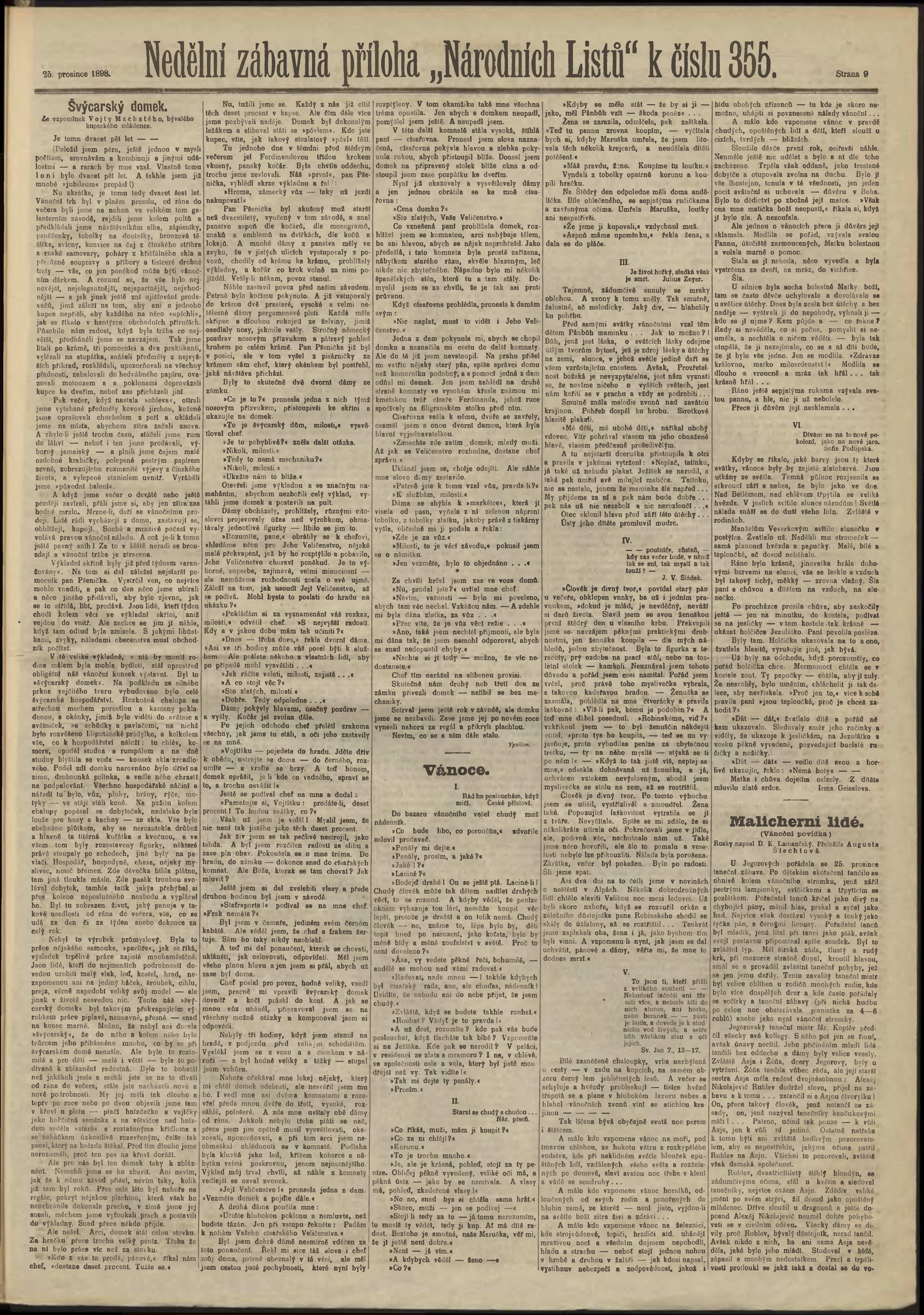 * Datum vydání výtisku: 25.12.1898 Číslo výtisku: 355