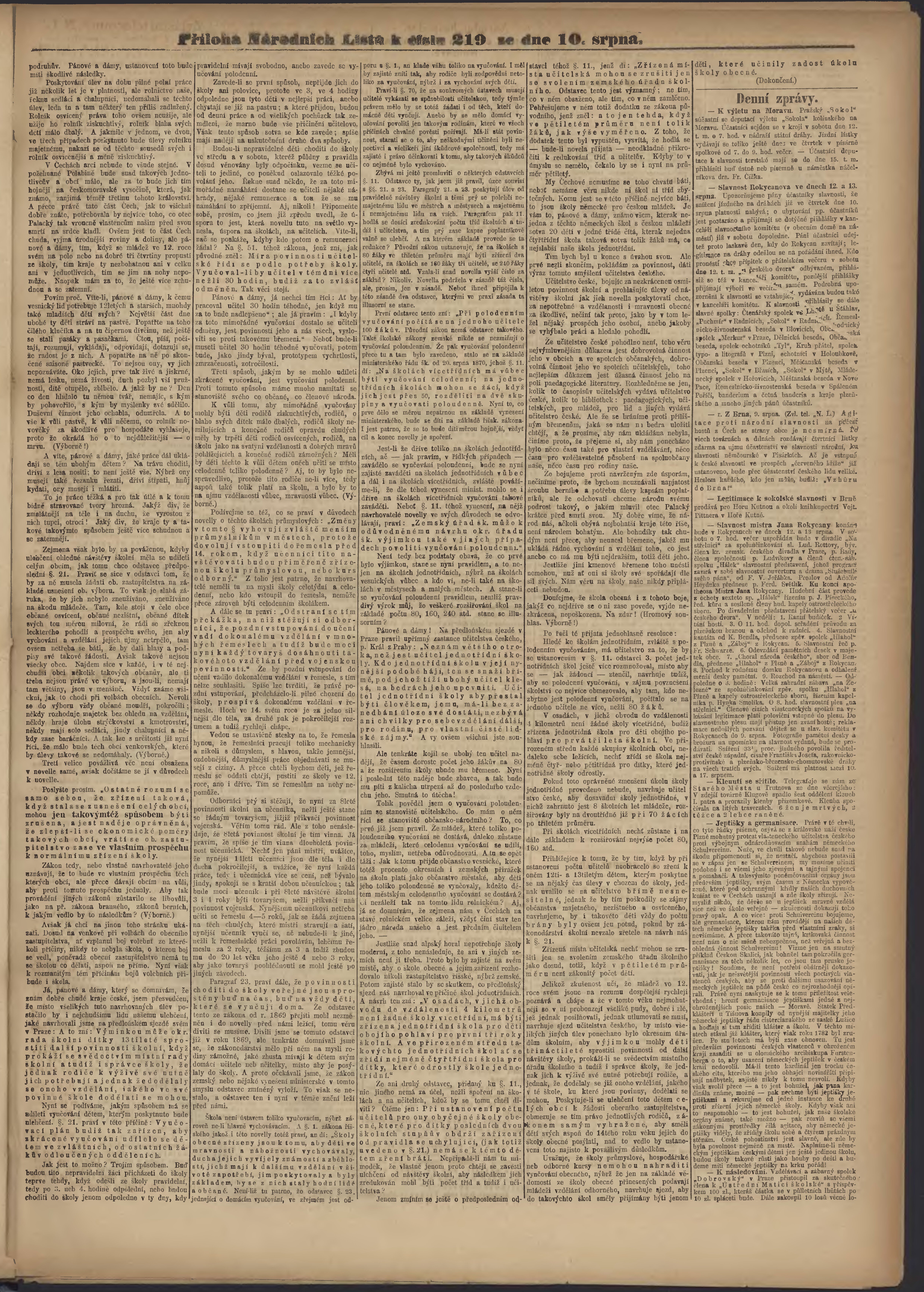 * Datum vydání výtisku: 10.8.1882 Číslo výtisku: 219 Poznámky k výtisku: ranní vydání;