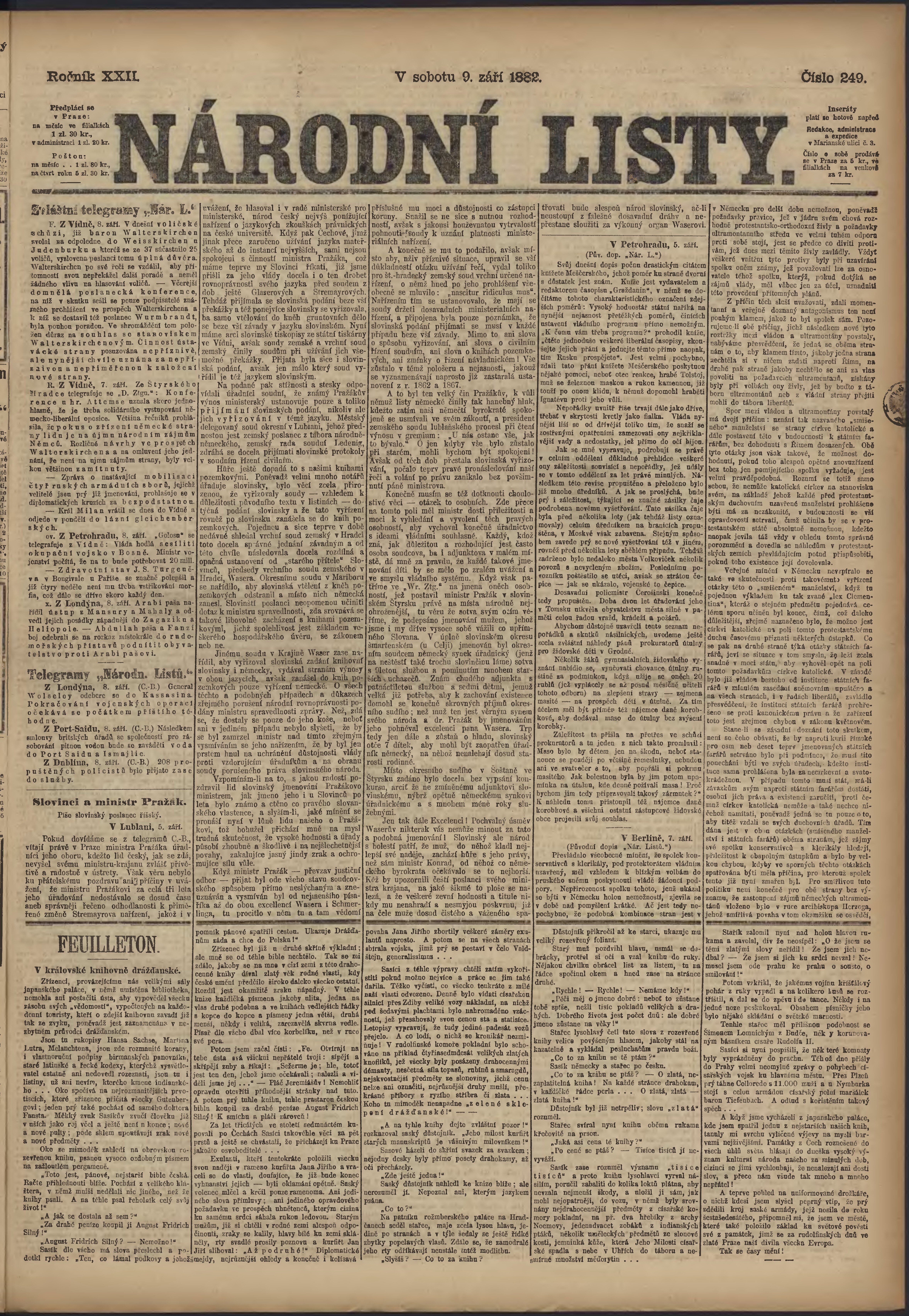 * Datum vydání výtisku: 9.9.1882 Číslo výtisku: 249 Poznámky k výtisku: ranní vydání;