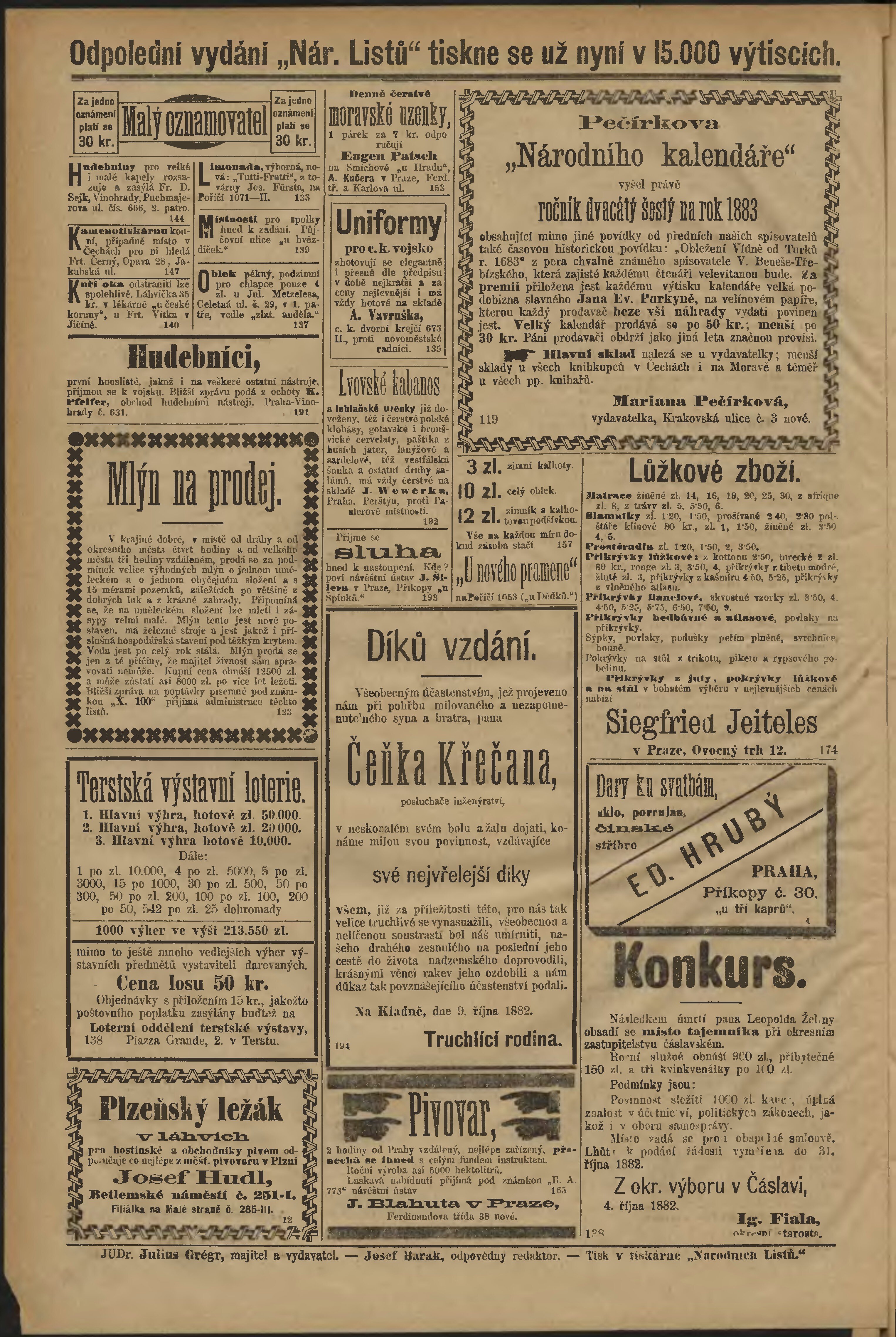 * Datum vydání výtisku: 10.10.1882 Číslo výtisku: 276 Poznámky k výtisku: odpolední vydání;