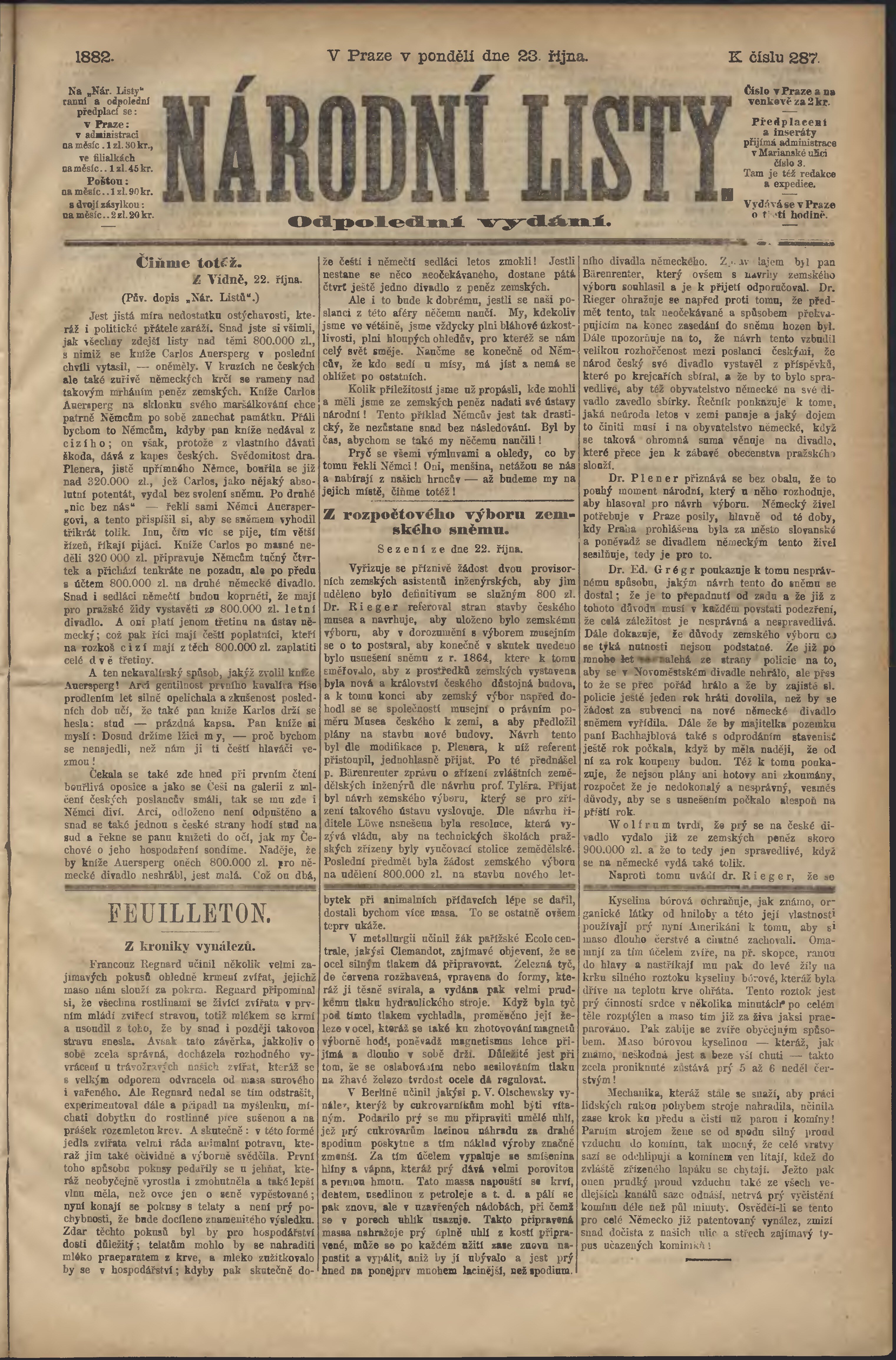 * Datum vydání výtisku: 23.10.1882 Číslo výtisku: 287 Poznámky k výtisku: odpolední vydání;