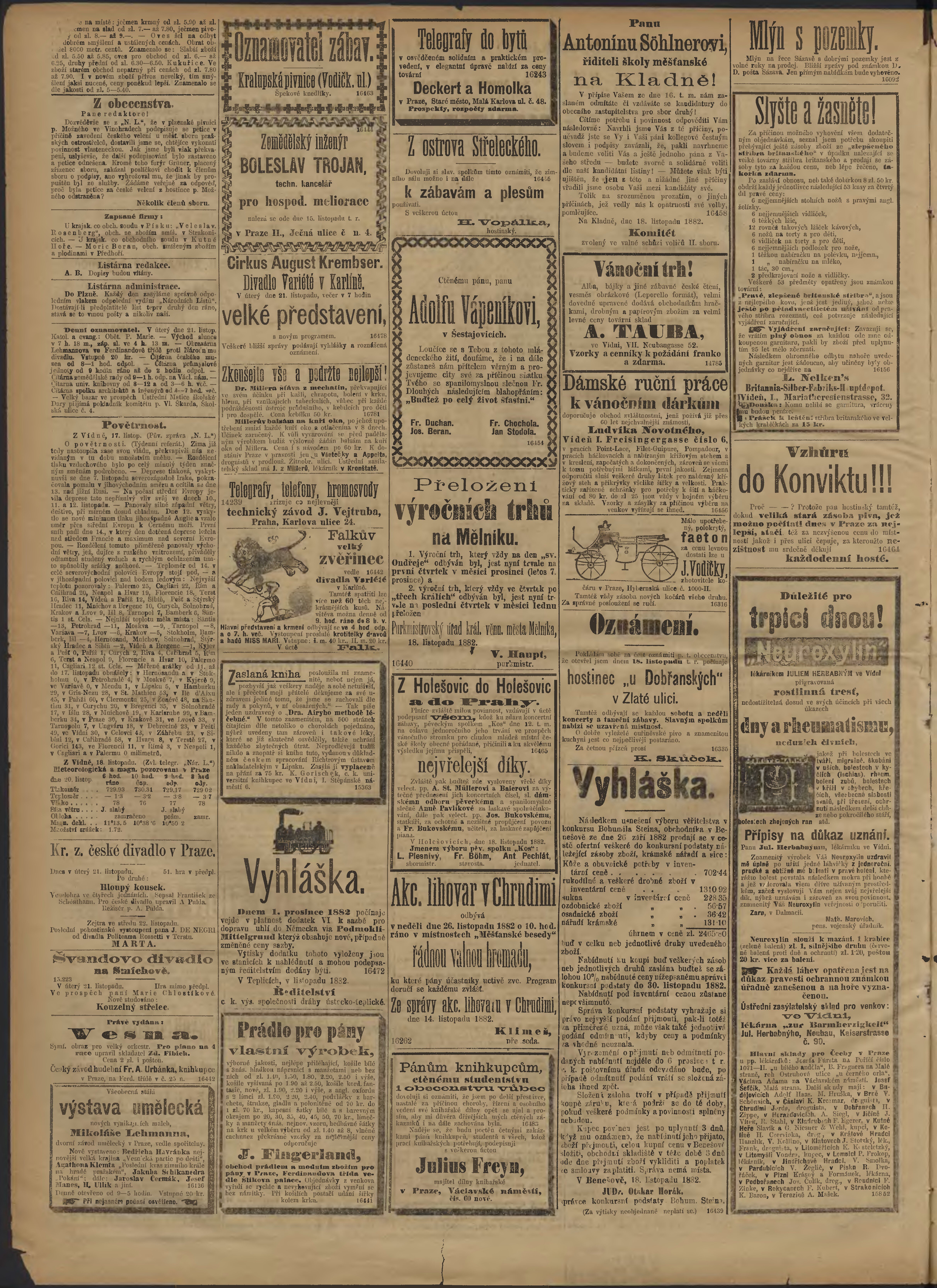 * Datum vydání výtisku: 21.11.1882 Číslo výtisku: 312 Poznámky k výtisku: ranní vydání;