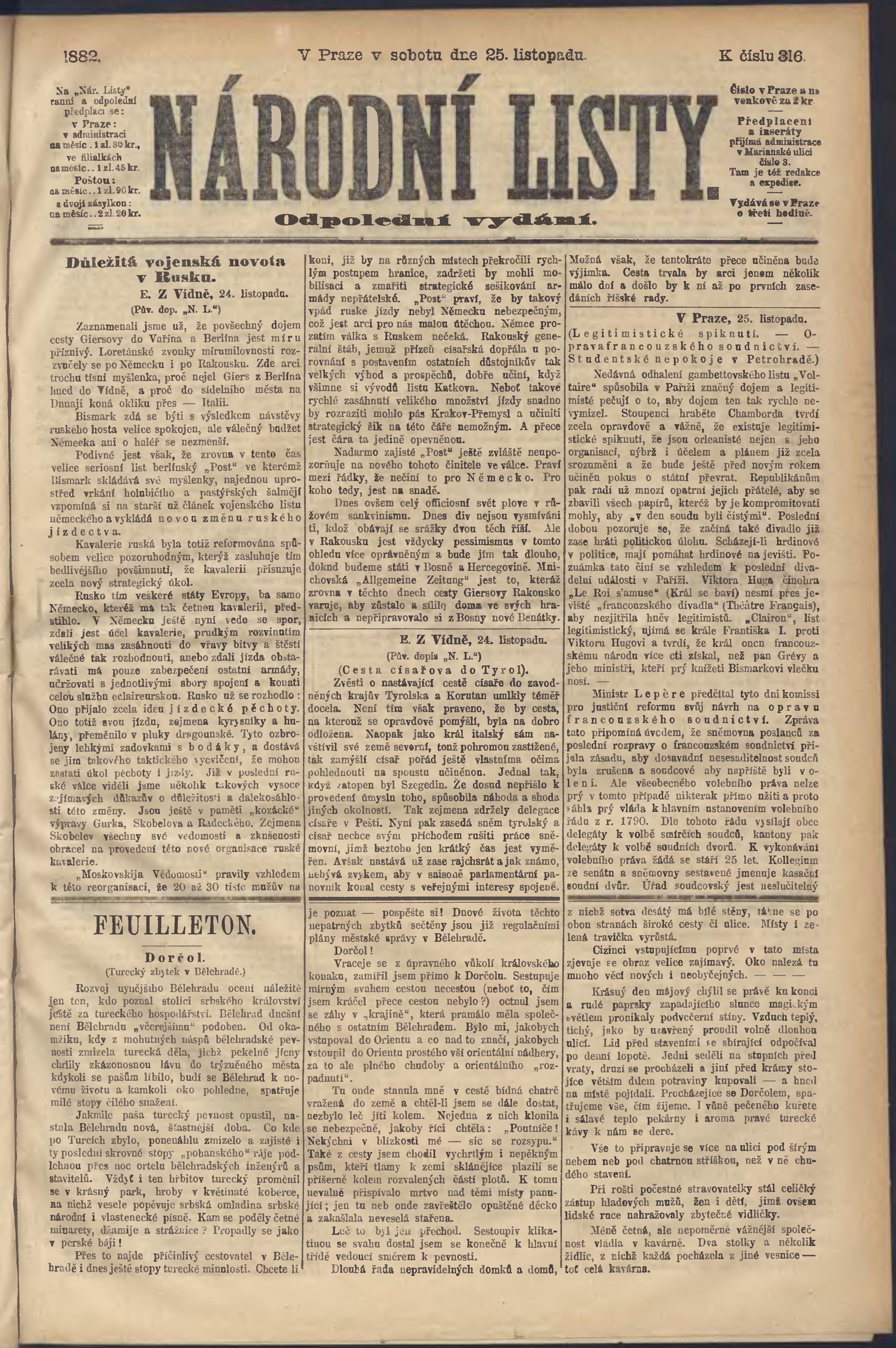 * Datum vydání výtisku: 25.11.1882 Číslo výtisku: 316 Poznámky k výtisku: odpolední vydání;