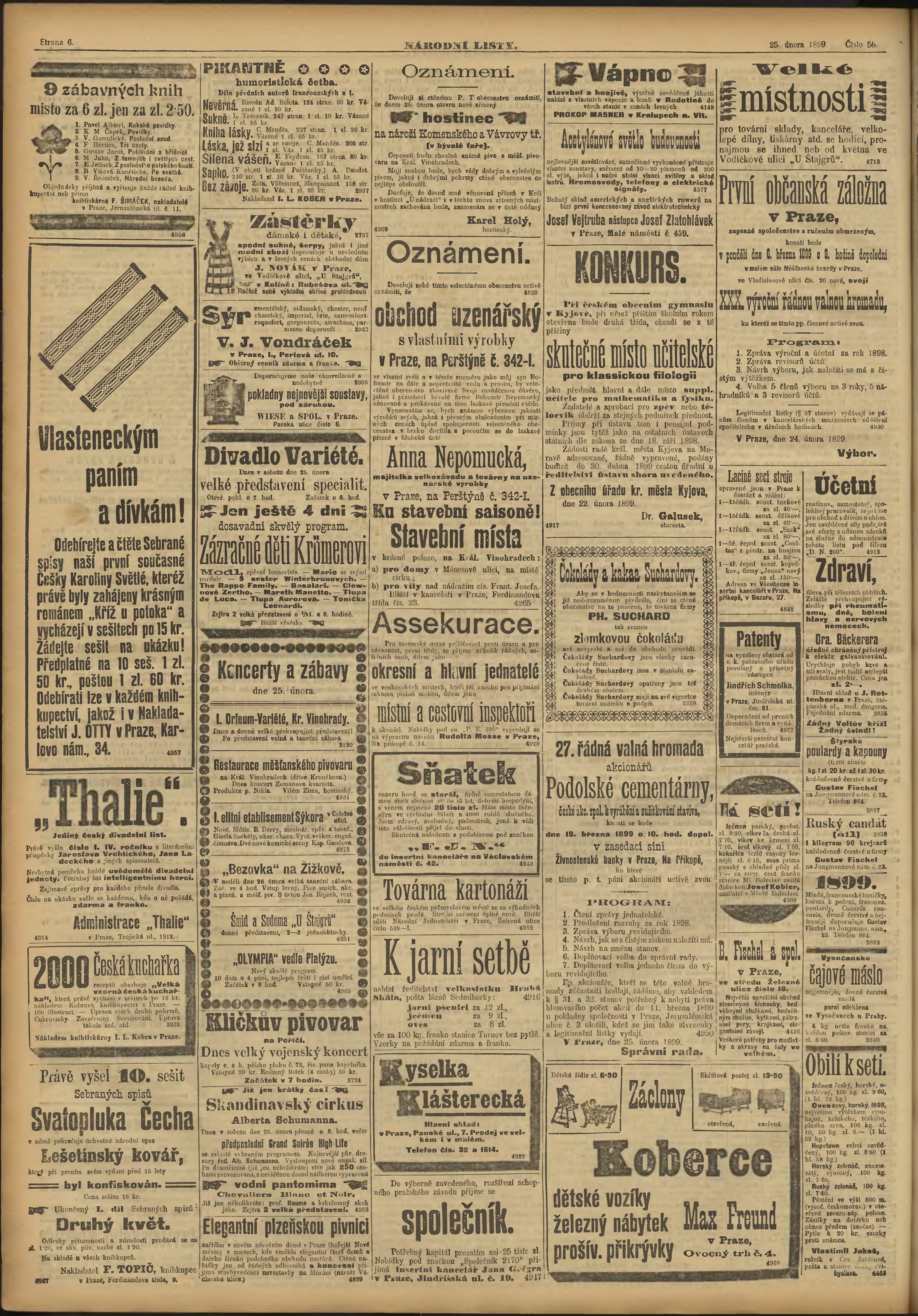 * Datum vydání výtisku: 25.2.1899 Číslo výtisku: 56 Poznámky k výtisku: ranní vydání;