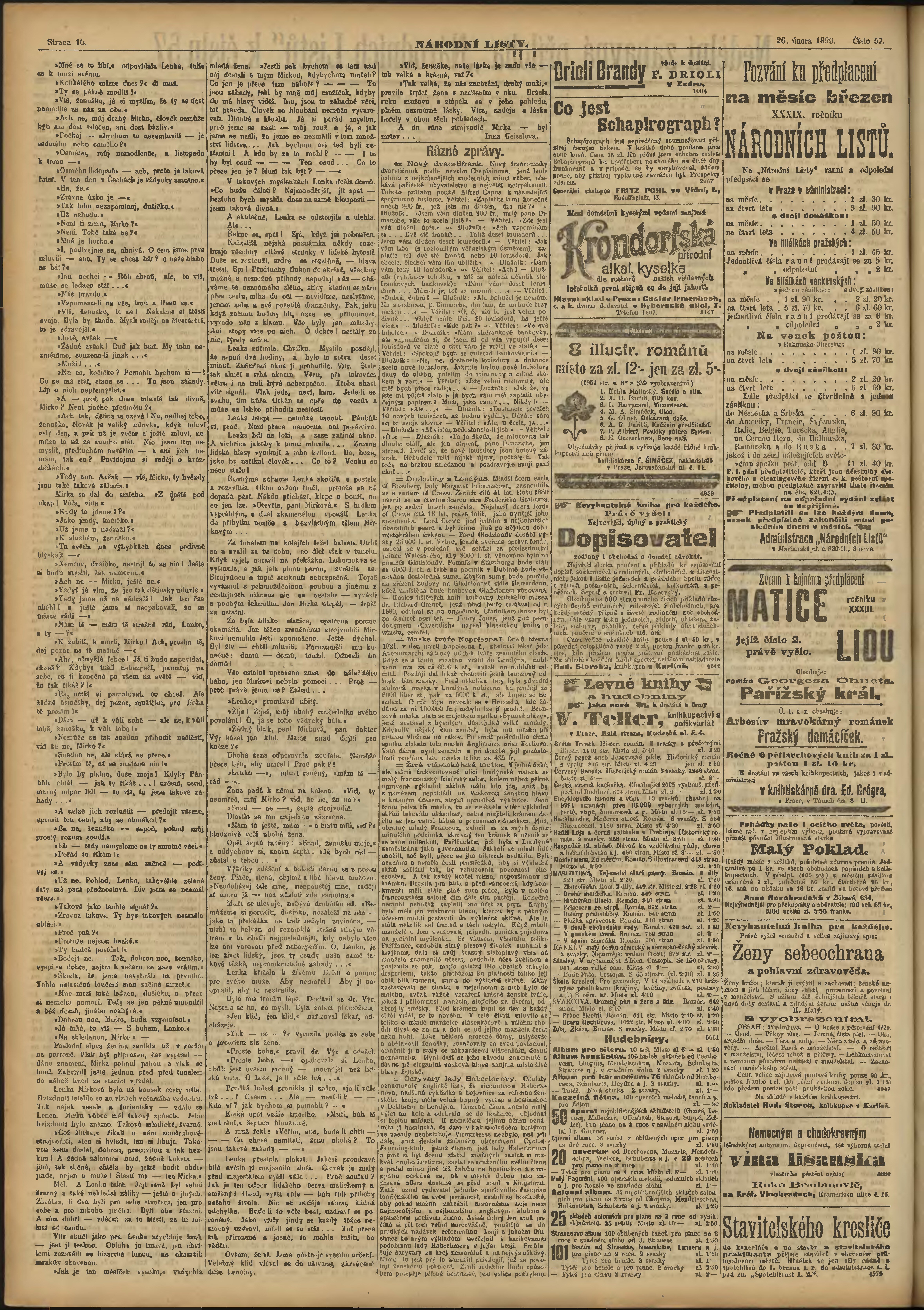 * Datum vydání výtisku: 26.2.1899 Číslo výtisku: 57 Poznámky k výtisku: ranní vydání;