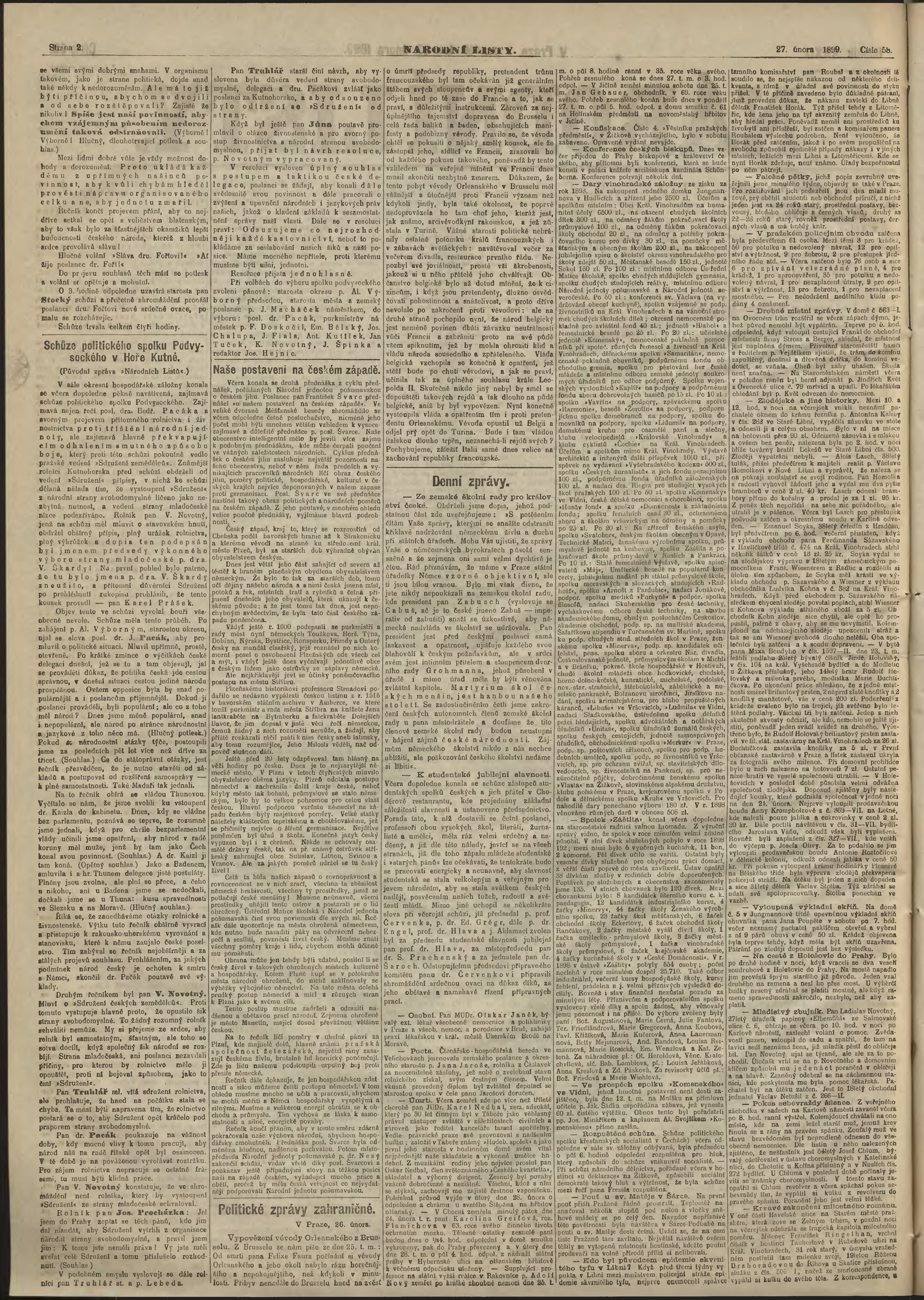 * Datum vydání výtisku: 27.2.1899 Číslo výtisku: 58 Poznámky k výtisku: ranní vydání;