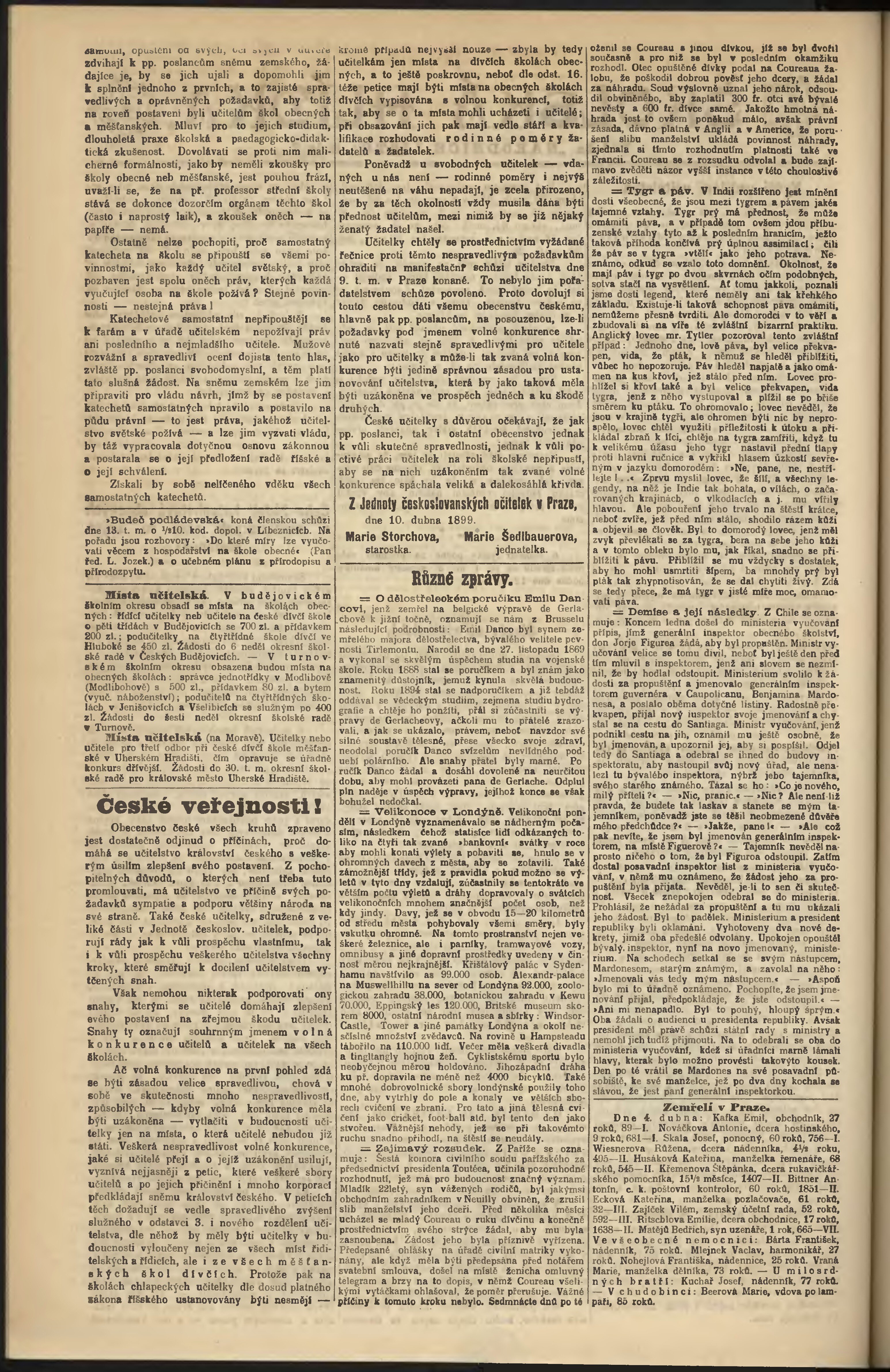 * Datum vydání výtisku: 11.4.1899 Číslo výtisku: 100 Poznámky k výtisku: odpolední vydání;