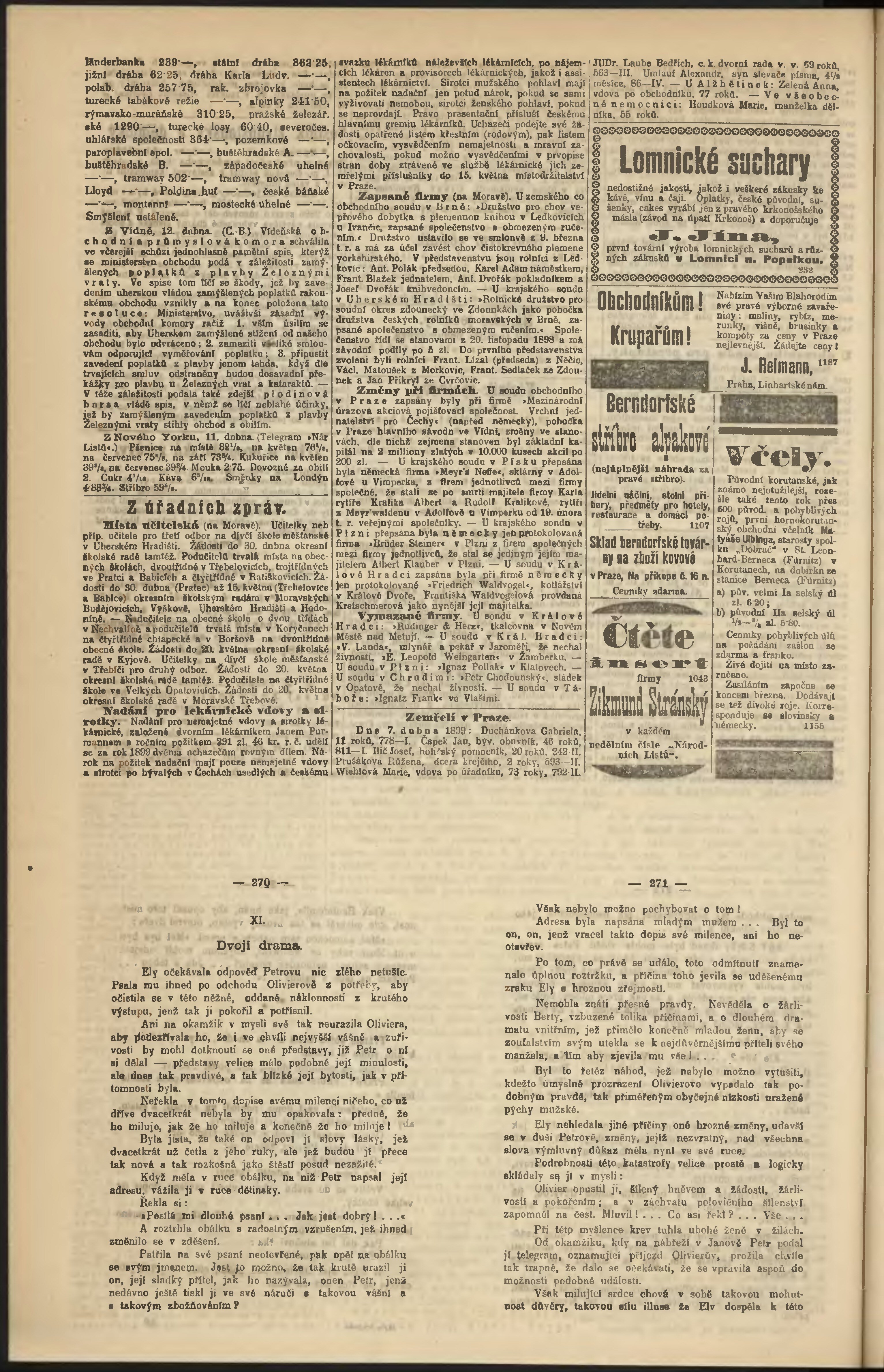 * Datum vydání výtisku: 12.4.1899 Číslo výtisku: 101 Poznámky k výtisku: odpolední vydání;