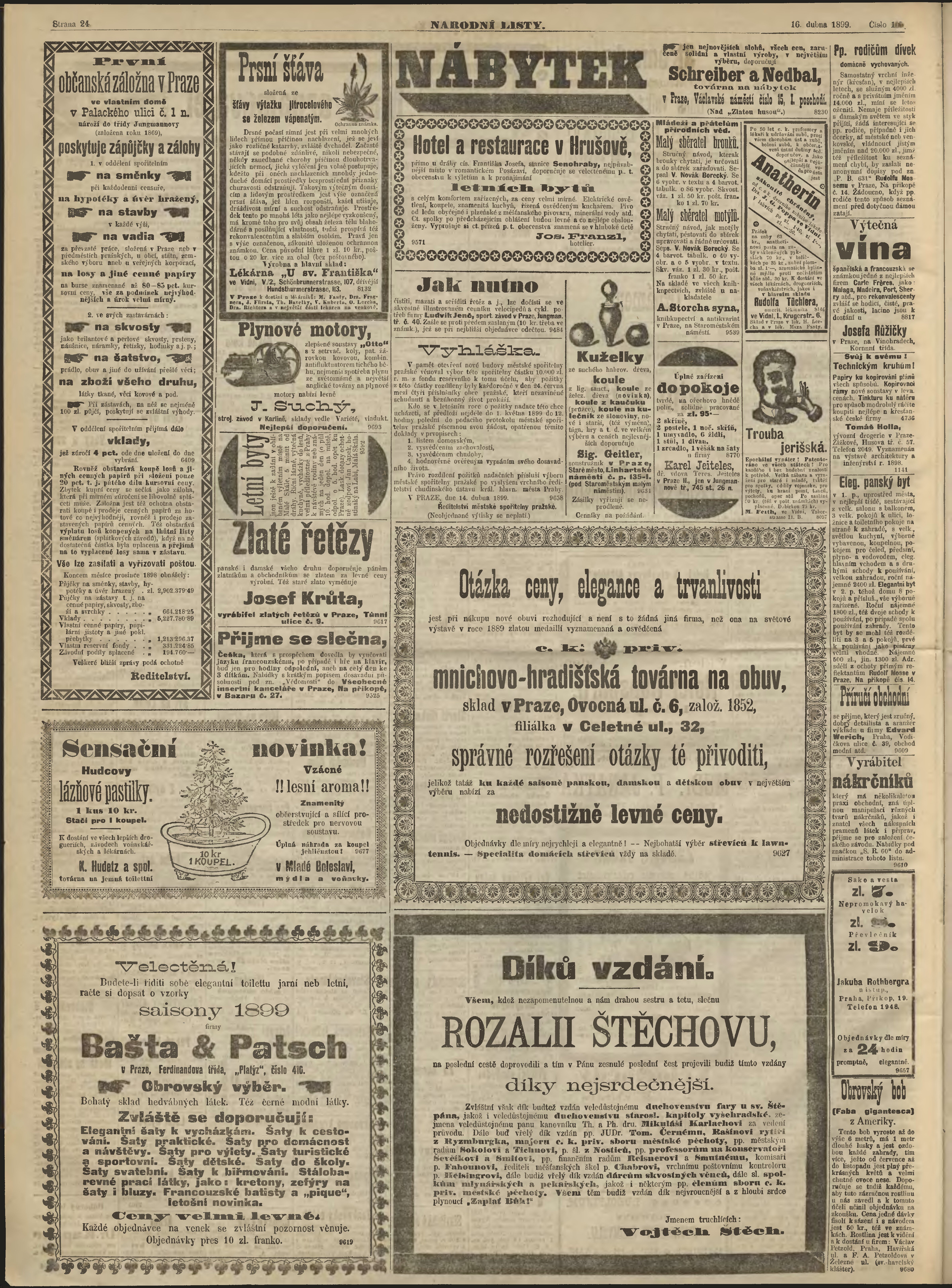 * Datum vydání výtisku: 16.4.1899 Číslo výtisku: 105 Poznámky k výtisku: ranní vydání;