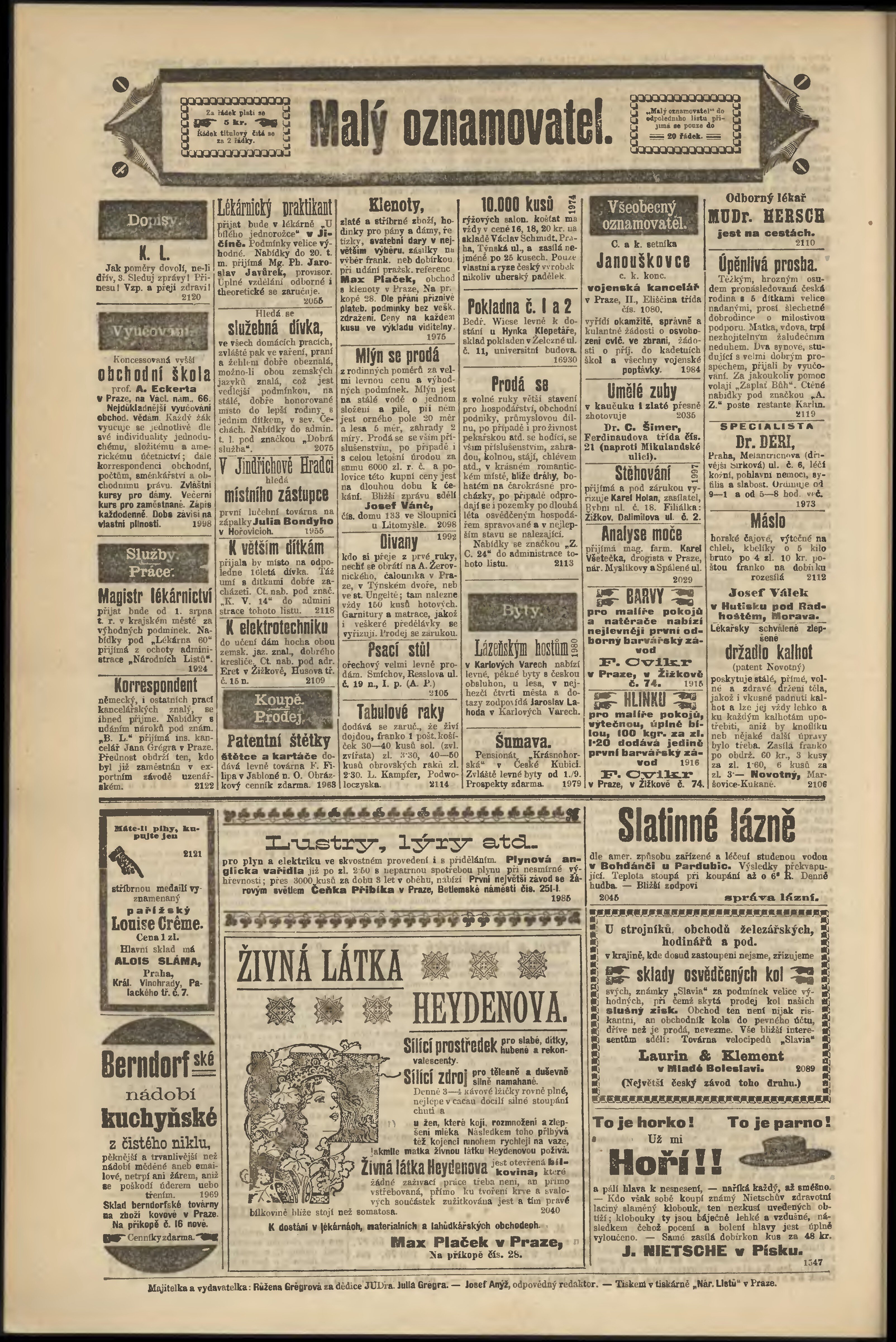 * Datum vydání výtisku: 11.7.1899 Číslo výtisku: 190 Poznámky k výtisku: odpolední vydání;