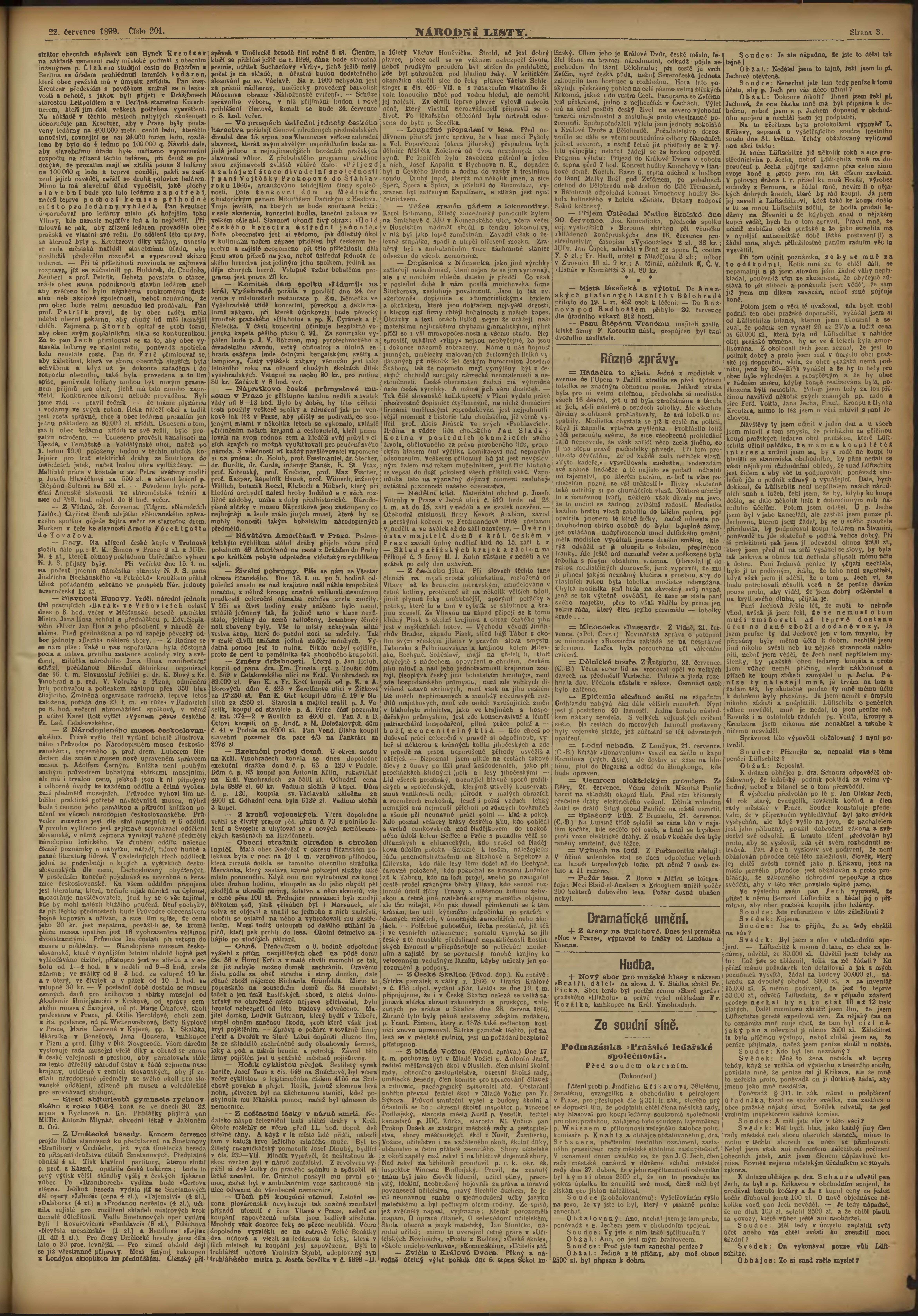 * Datum vydání výtisku: 22.7.1899 Číslo výtisku: 201 Poznámky k výtisku: ranní vydání;