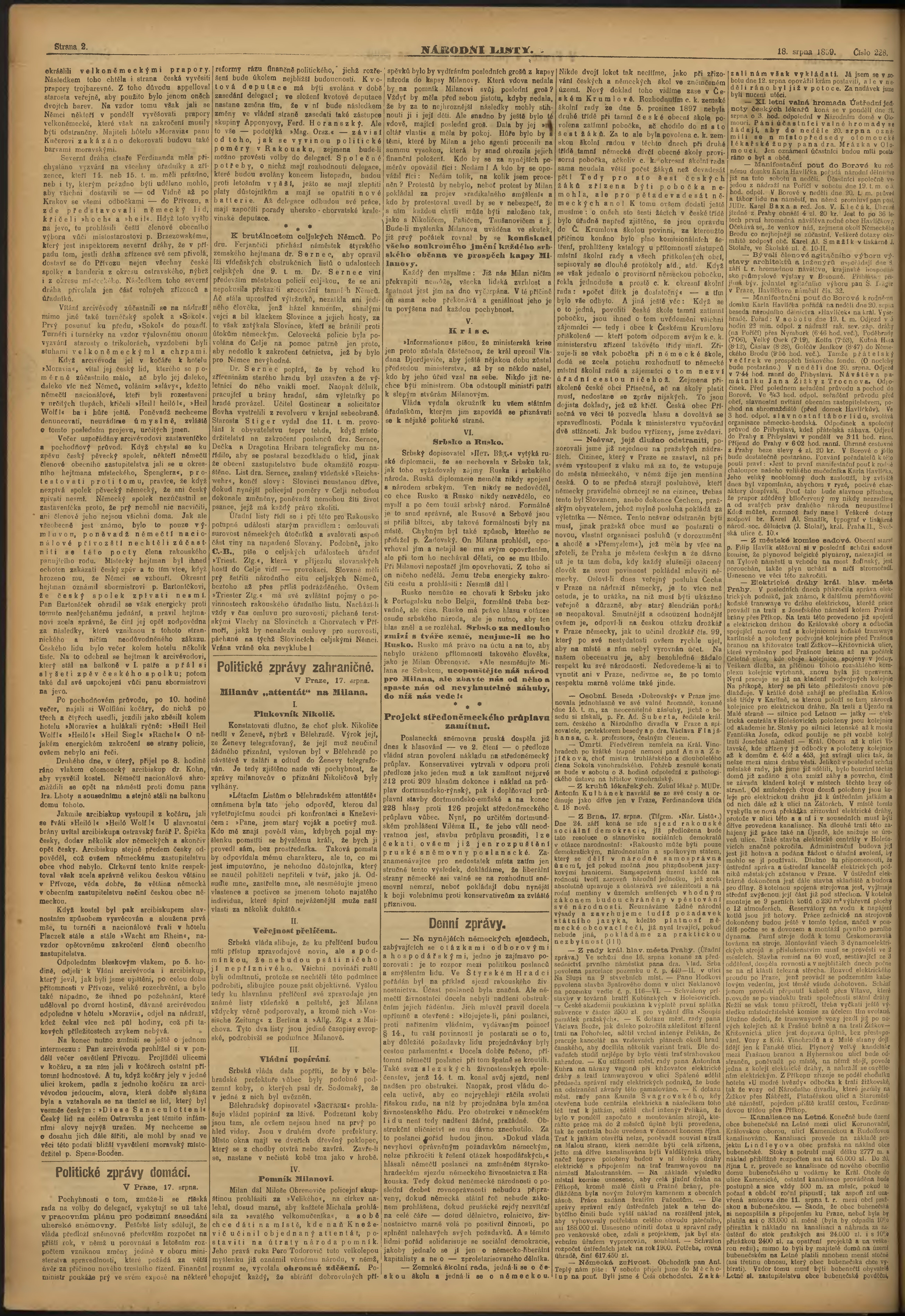 * Datum vydání výtisku: 18.8.1899 Číslo výtisku: 228 Poznámky k výtisku: ranní vydání;