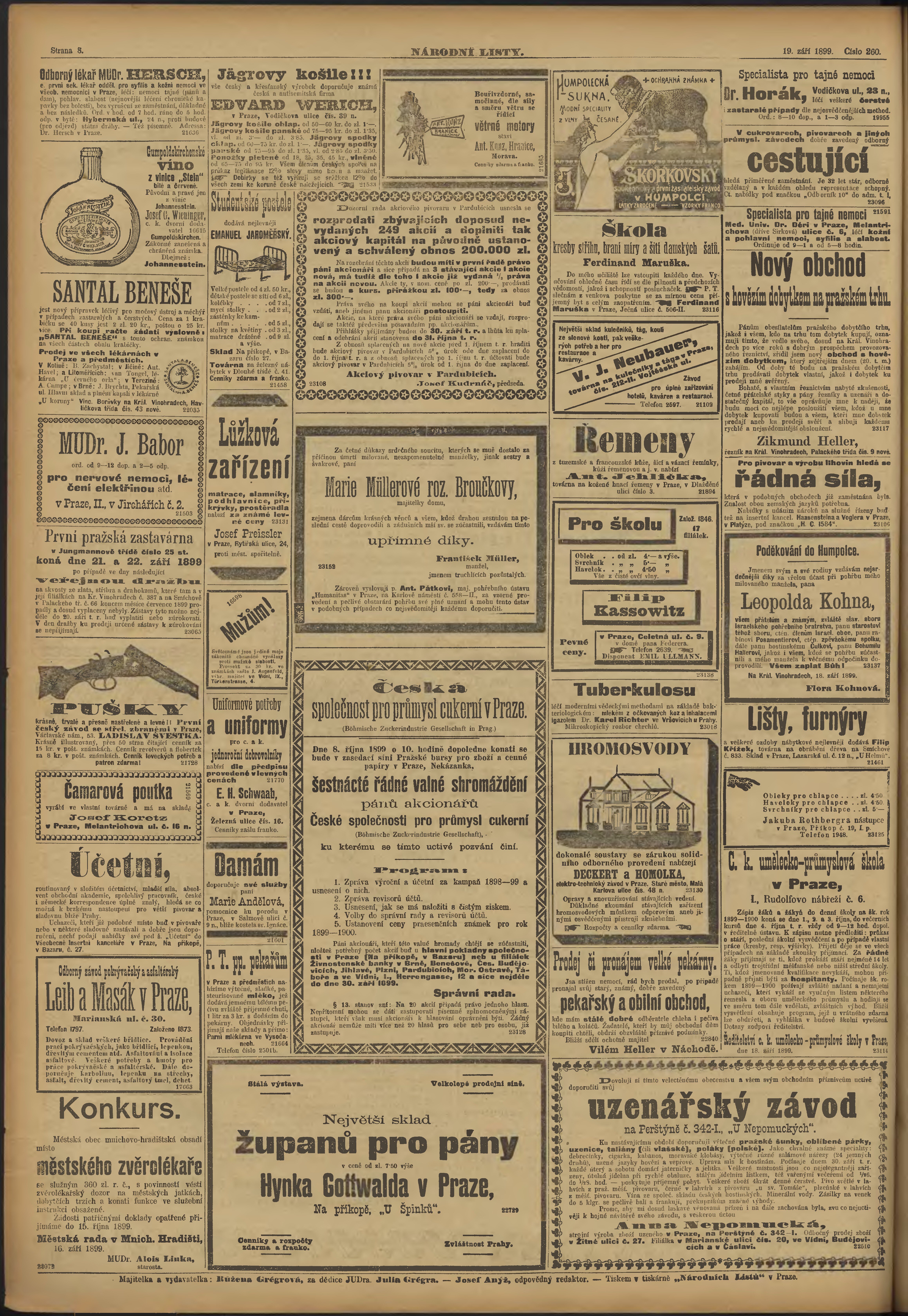 * Datum vydání výtisku: 19.9.1899 Číslo výtisku: 260 Poznámky k výtisku: ranní vydání;