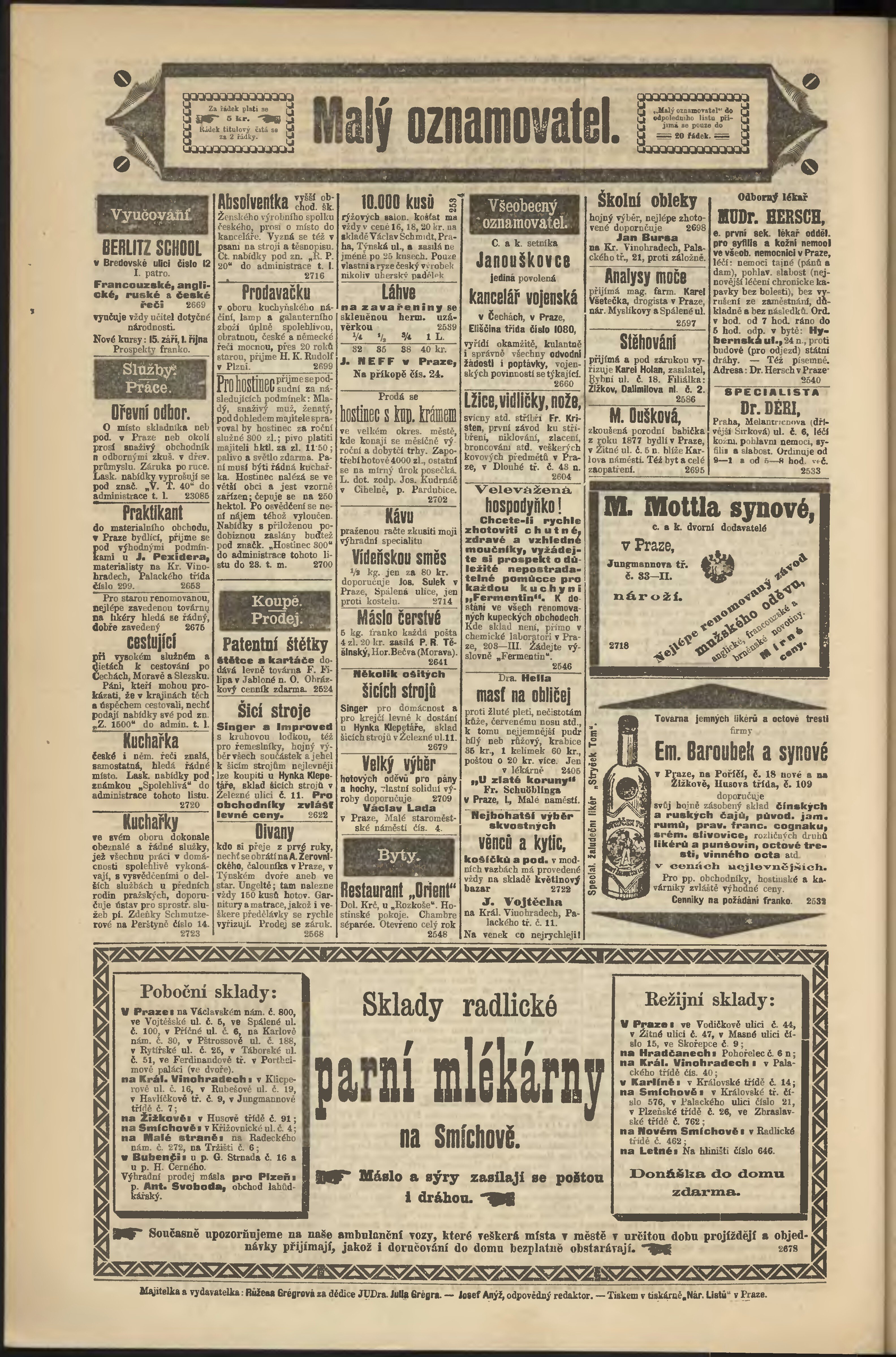 * Datum vydání výtisku: 19.9.1899 Číslo výtisku: 260 Poznámky k výtisku: odpolední vydání;