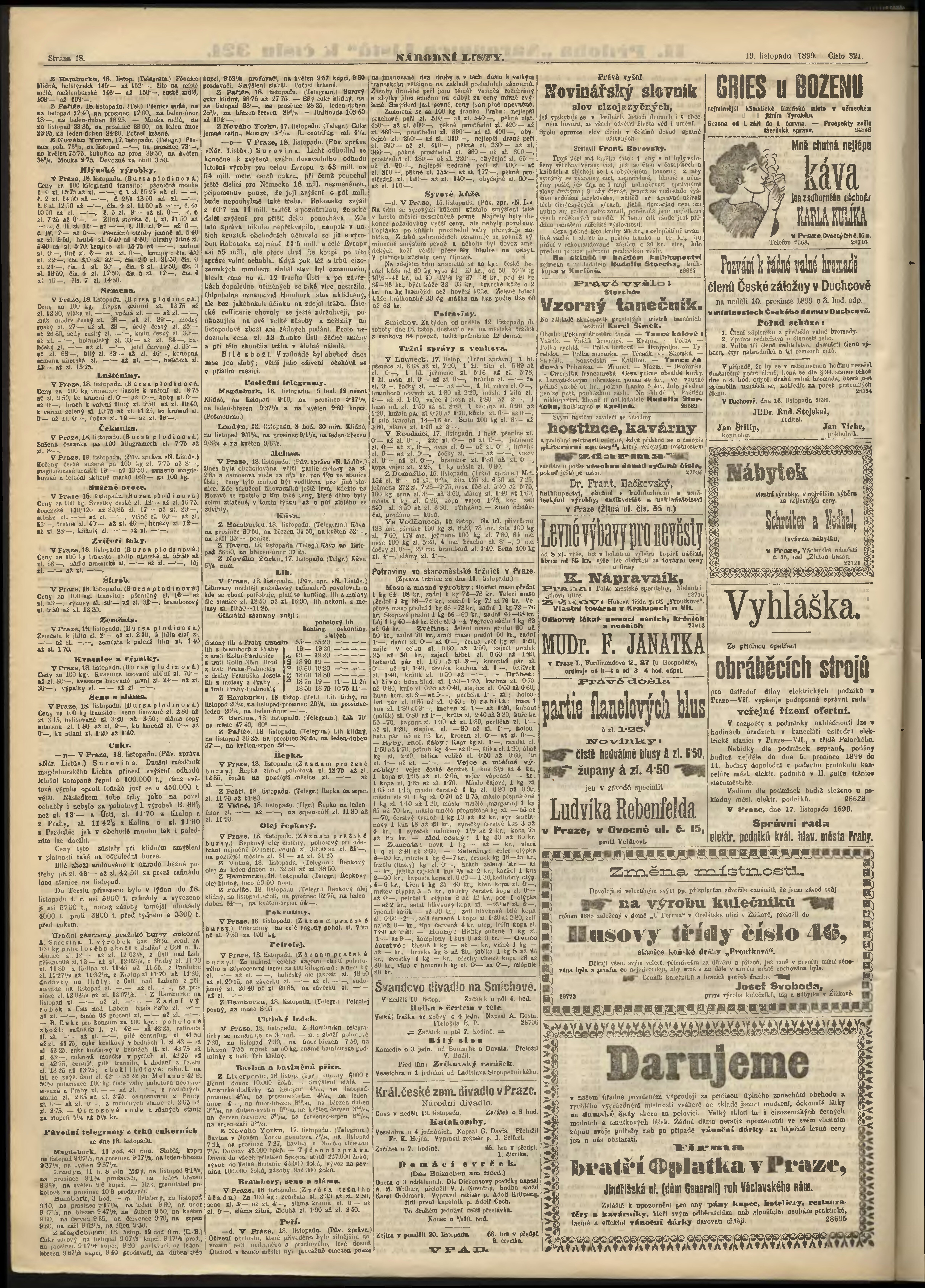 * Datum vydání výtisku: 19.11.1899 Číslo výtisku: 321 Poznámky k výtisku: ranní vydání;