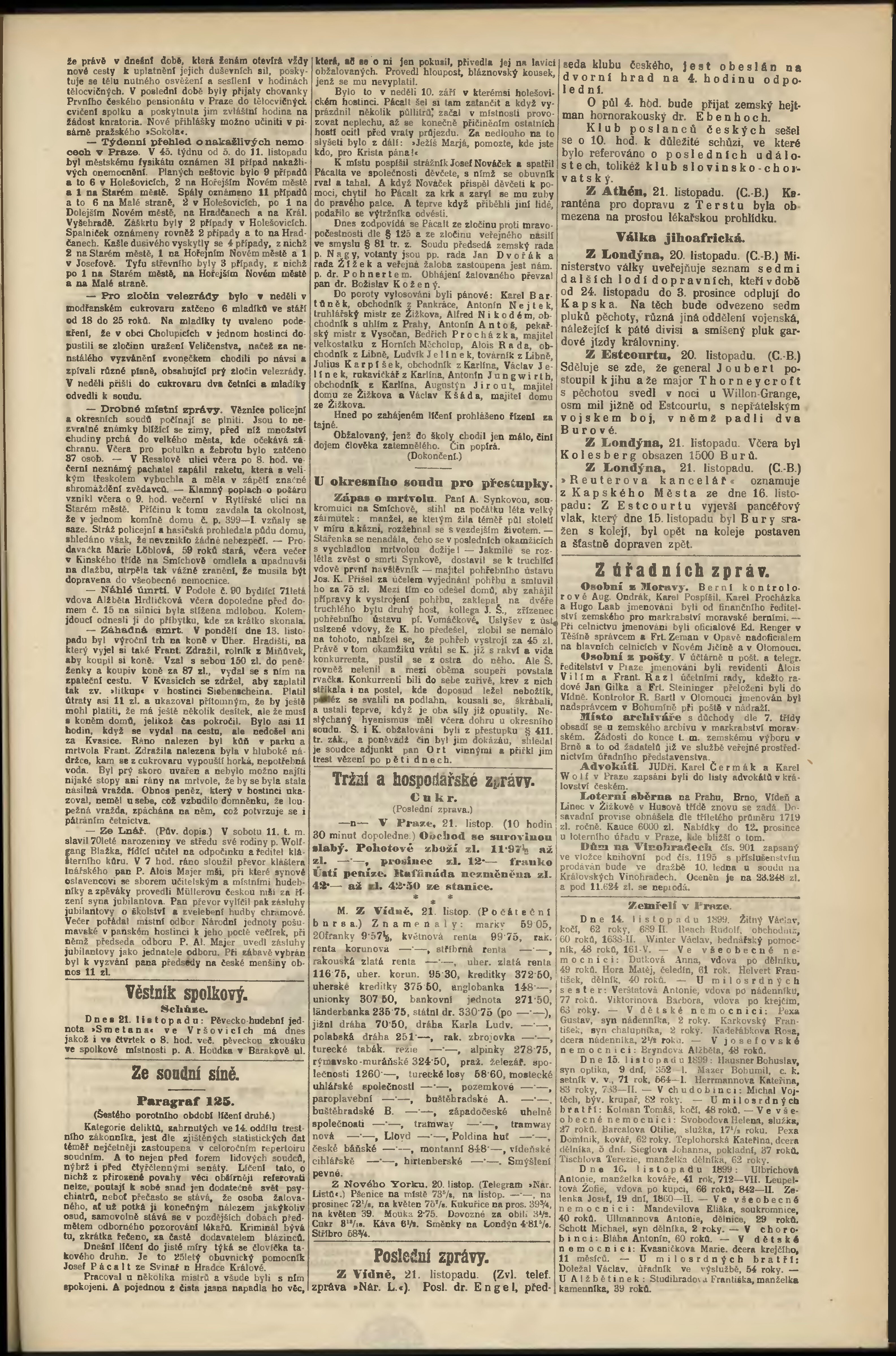 * Datum vydání výtisku: 21.11.1899 Číslo výtisku: 323 Poznámky k výtisku: odpolední vydání;