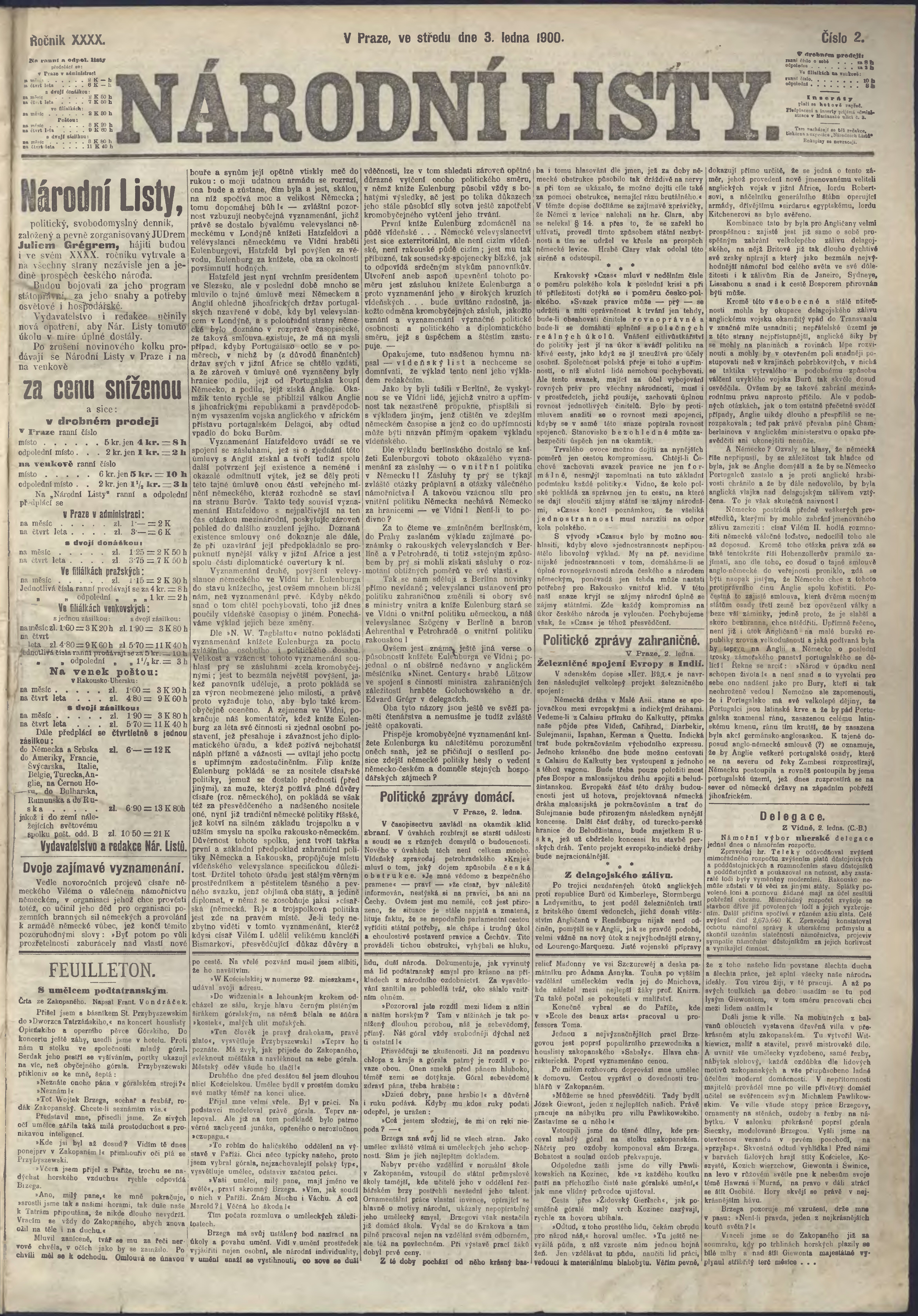 * Datum vydání výtisku: 3.1.1900 Číslo výtisku: 2 Poznámky k výtisku: ranní vydání;