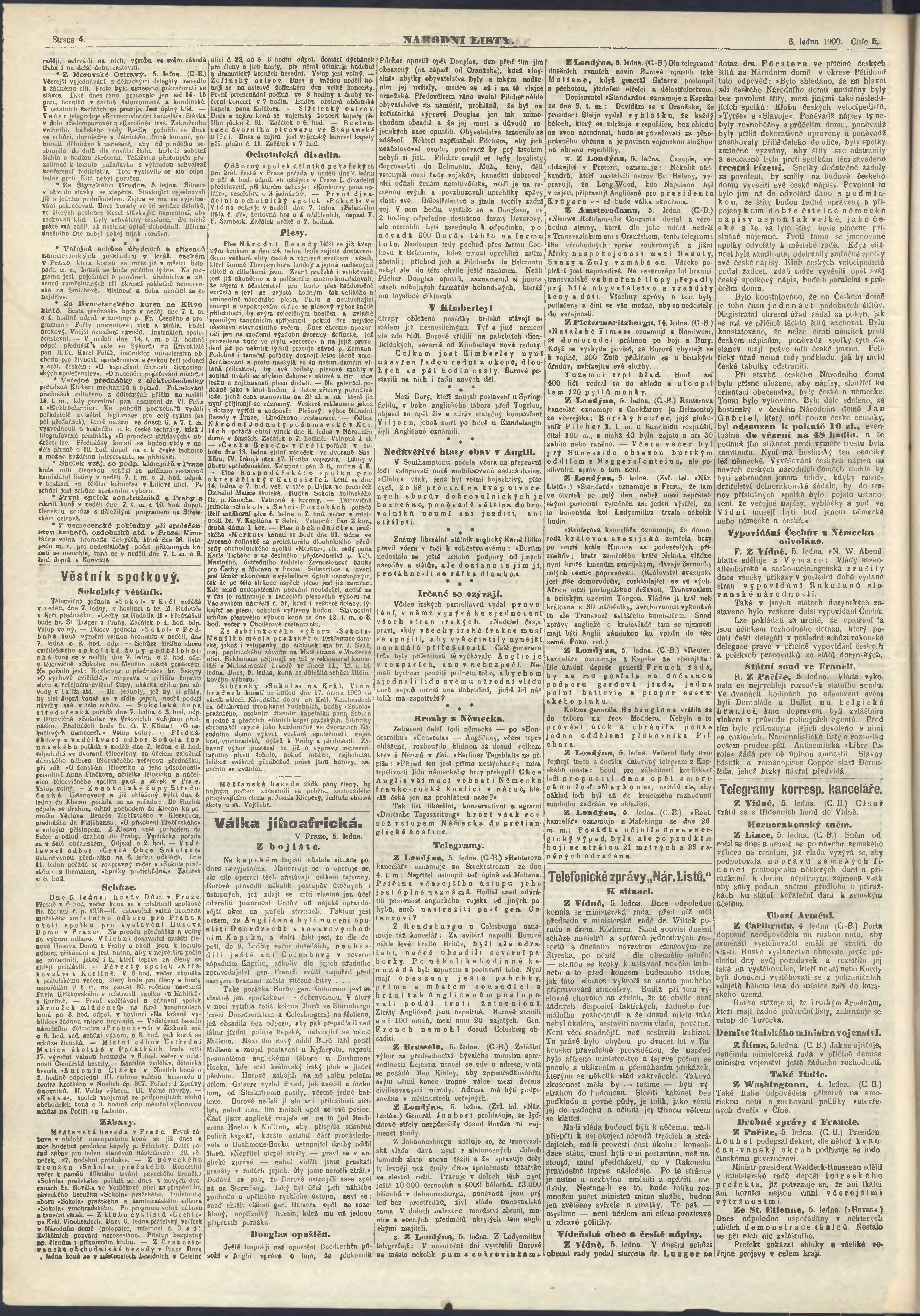 * Datum vydání výtisku: 6.1.1900 Číslo výtisku: 5 Poznámky k výtisku: ranní vydání;