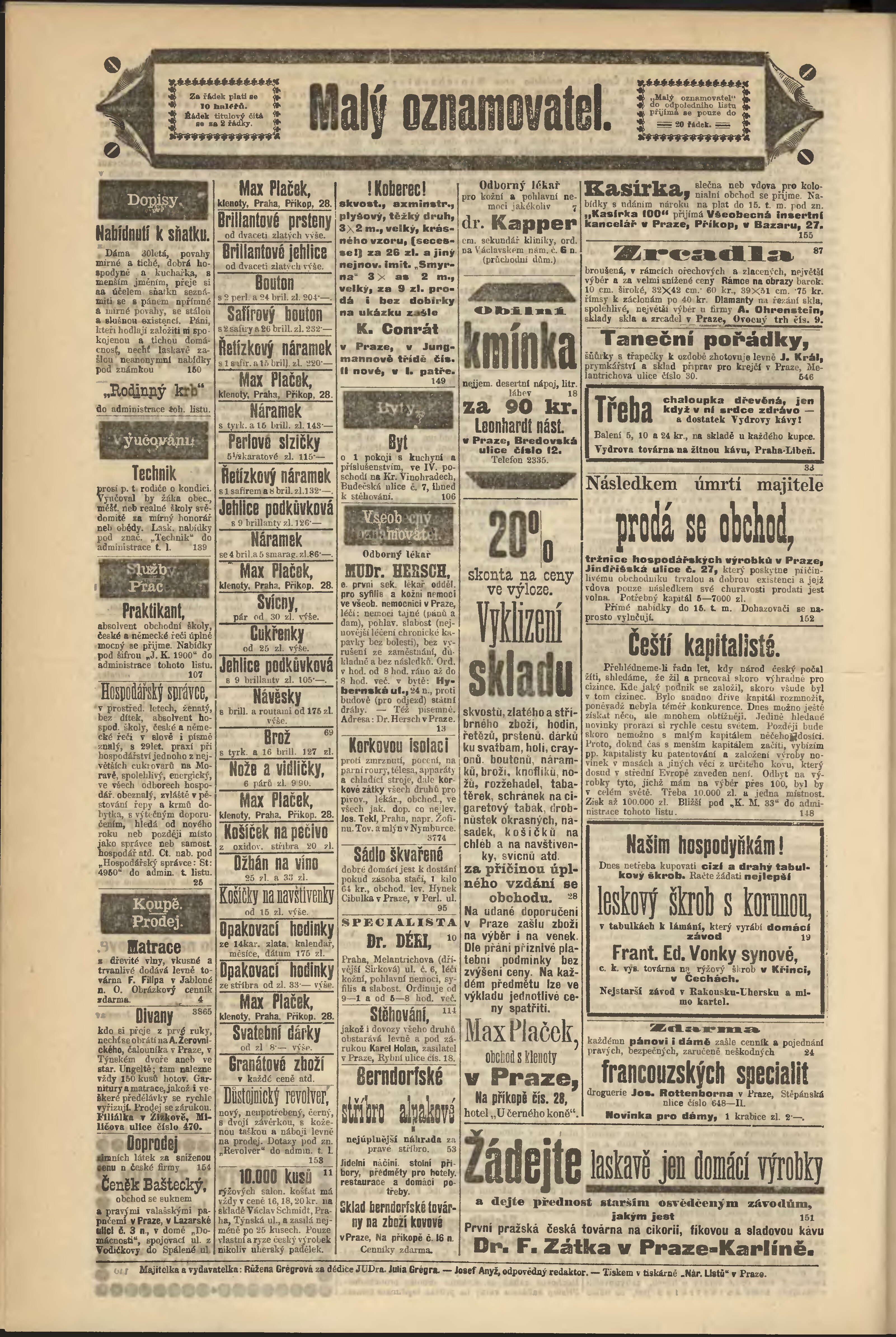 * Datum vydání výtisku: 11.1.1900 Číslo výtisku: 10 Poznámky k výtisku: odpolední vydání;