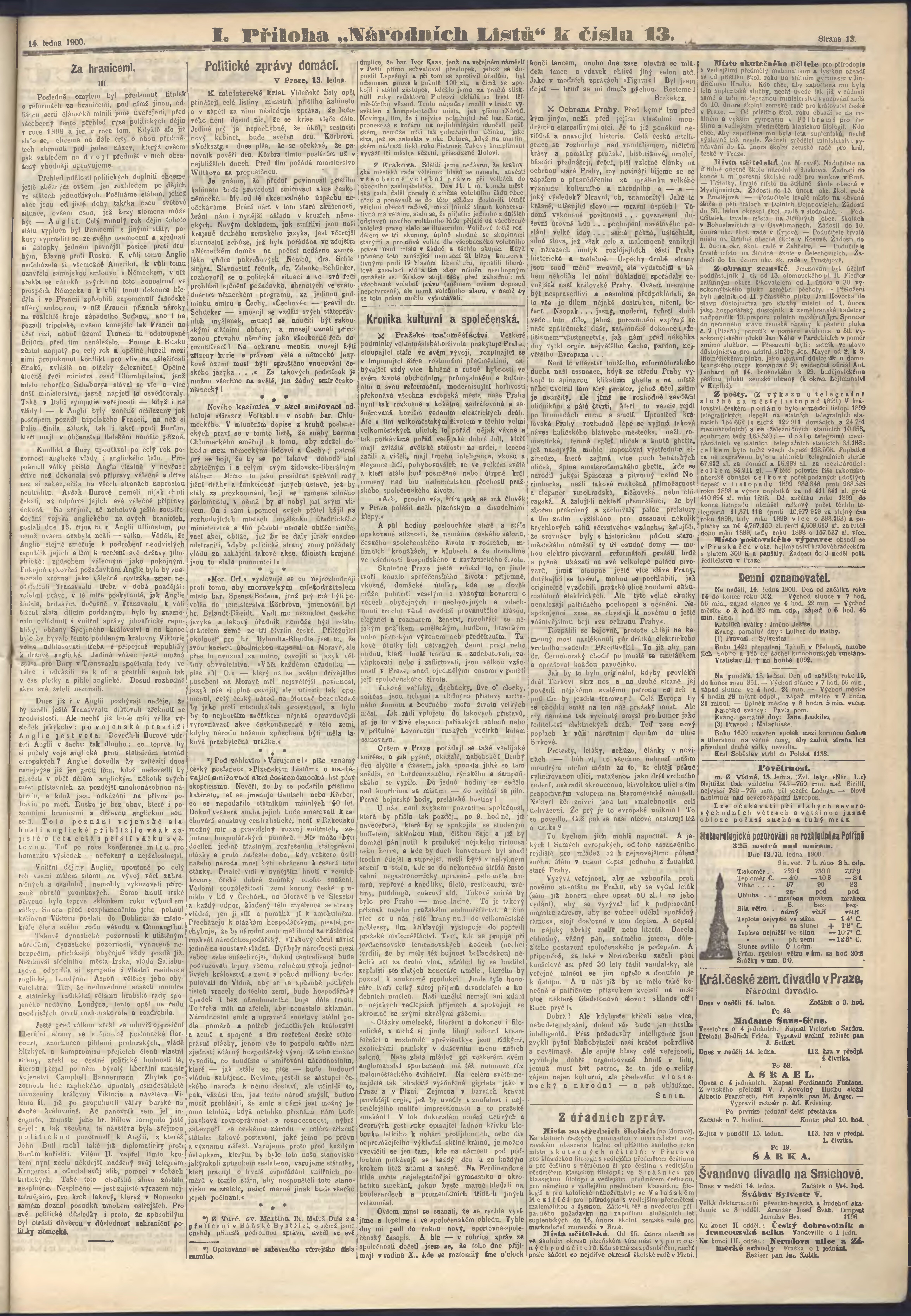 * Datum vydání výtisku: 14.1.1900 Číslo výtisku: 13 Poznámky k výtisku: ranní vydání;