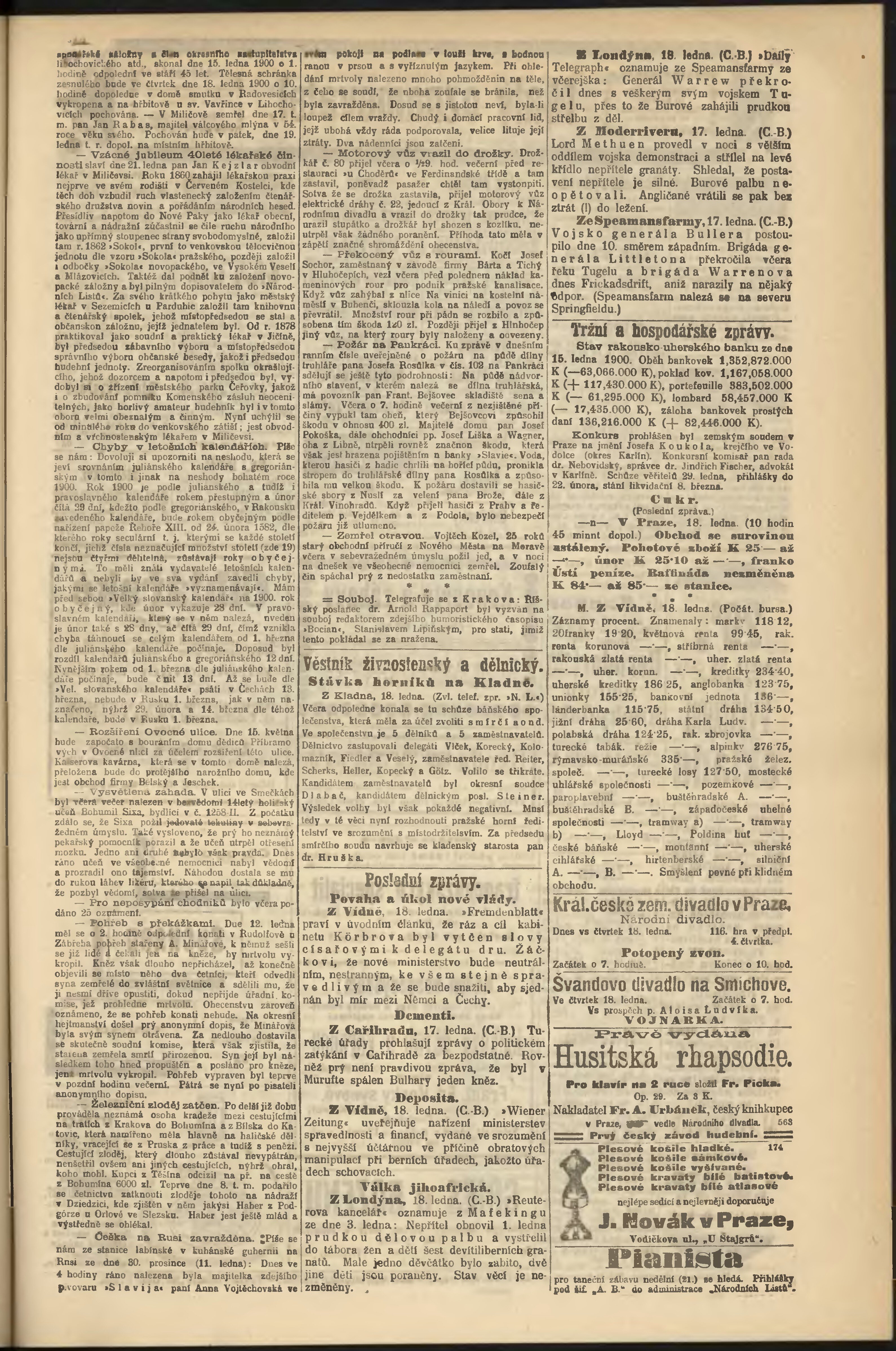 * Datum vydání výtisku: 18.1.1900 Číslo výtisku: 17 Poznámky k výtisku: odpolední vydání;