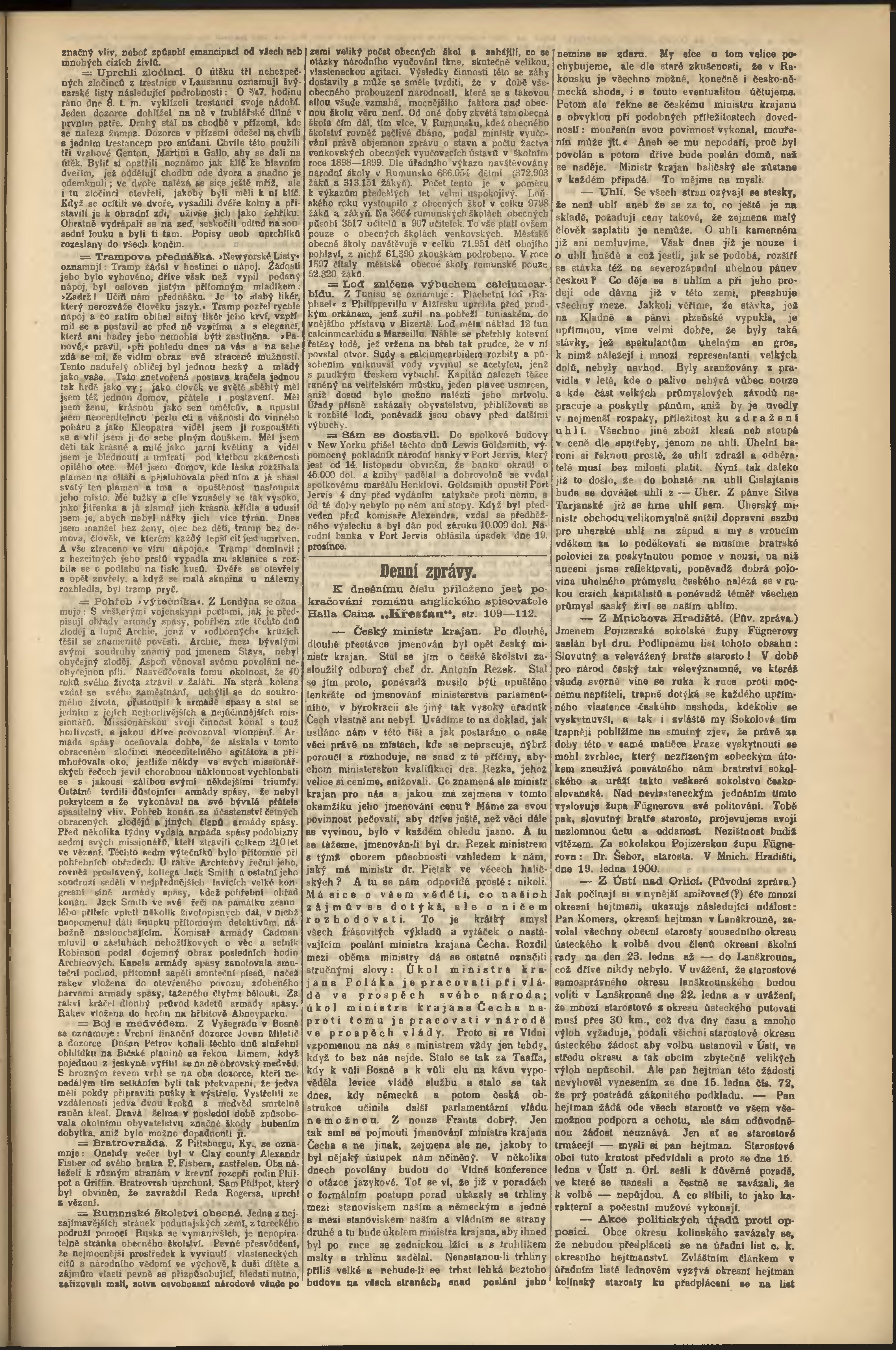 * Datum vydání výtisku: 20.1.1900 Číslo výtisku: 19 Poznámky k výtisku: odpolední vydání;