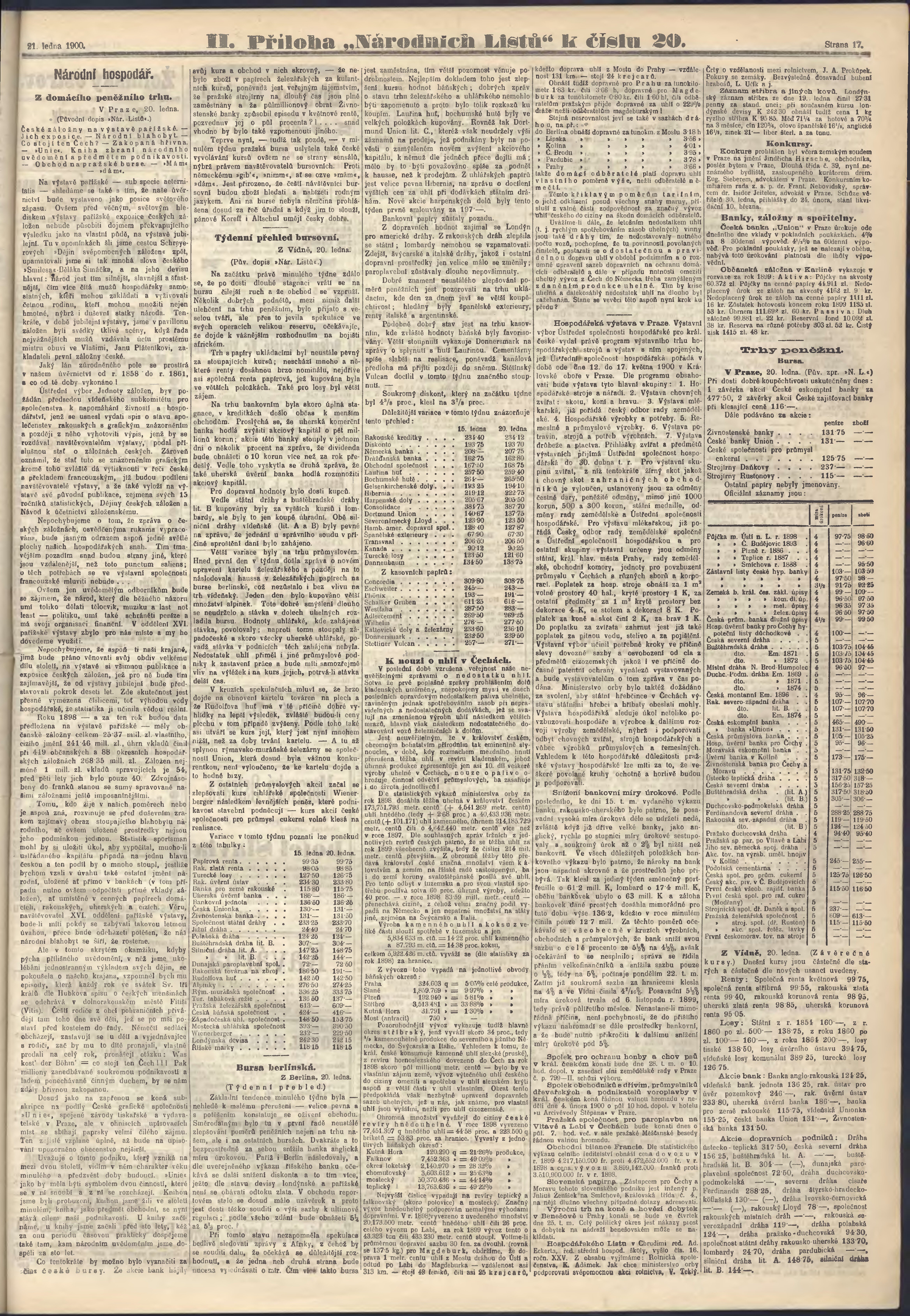 * Datum vydání výtisku: 21.1.1900 Číslo výtisku: 20 Poznámky k výtisku: ranní vydání;