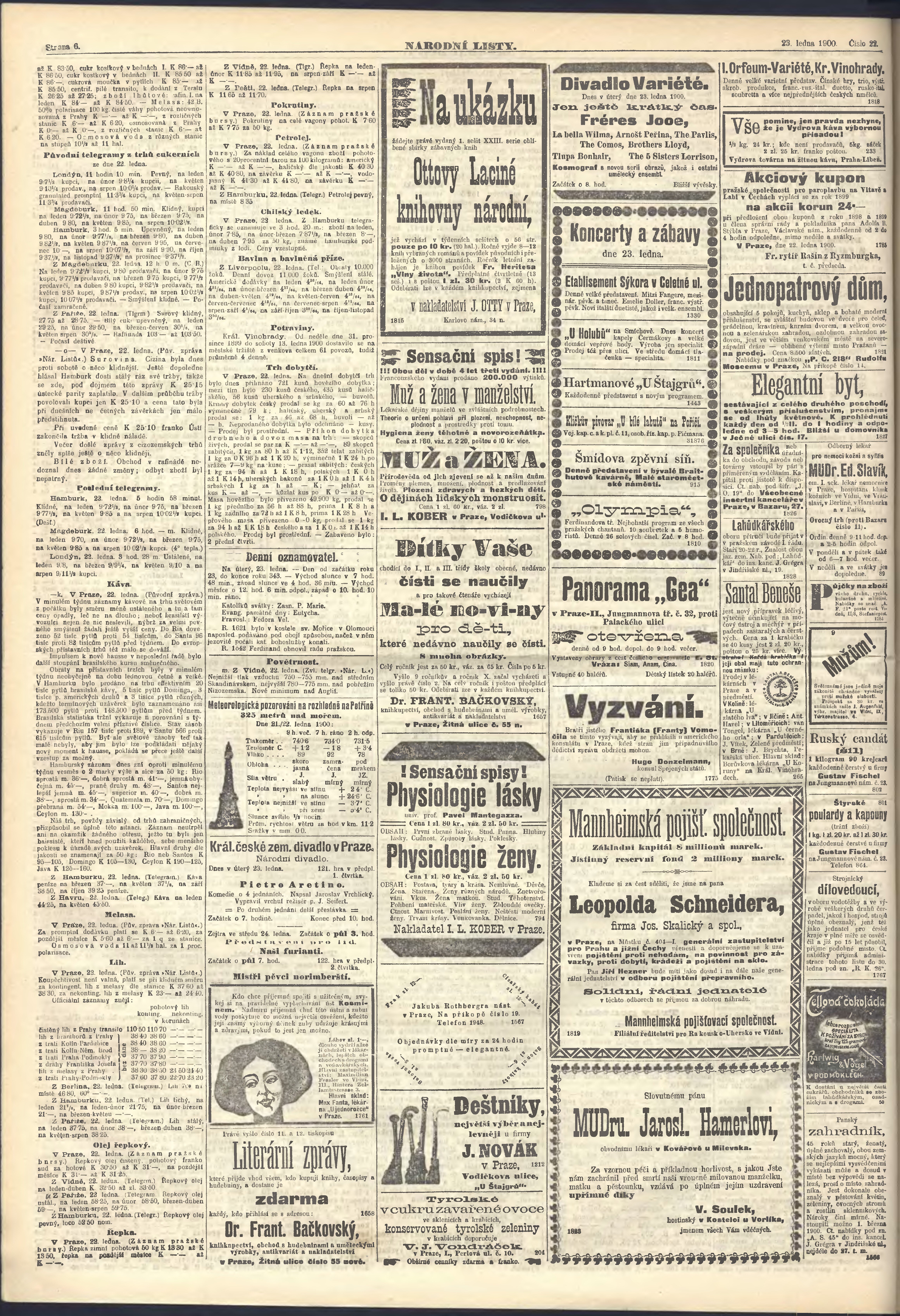 * Datum vydání výtisku: 23.1.1900 Číslo výtisku: 22 Poznámky k výtisku: ranní vydání;