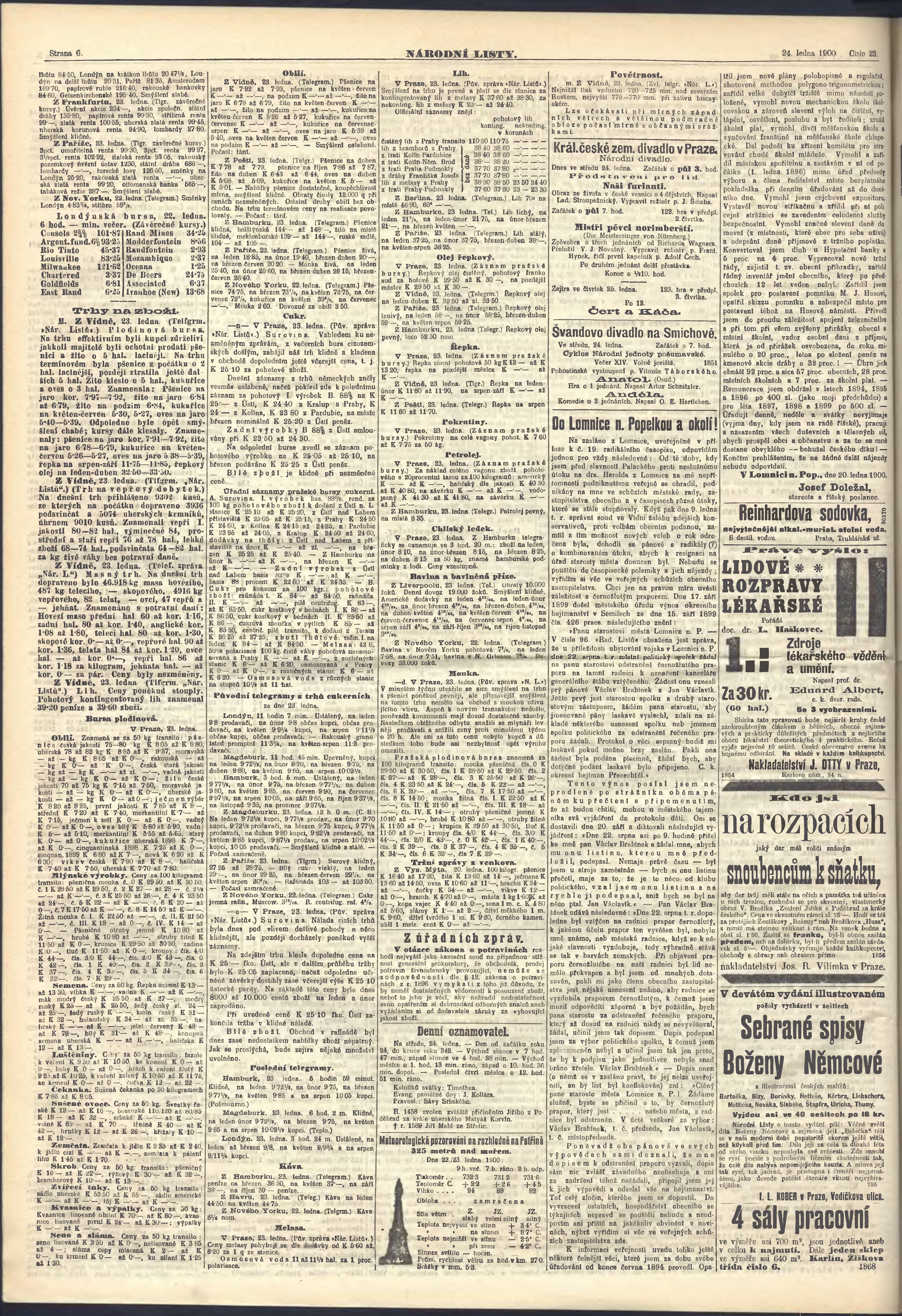 * Datum vydání výtisku: 24.1.1900 Číslo výtisku: 23 Poznámky k výtisku: ranní vydání;