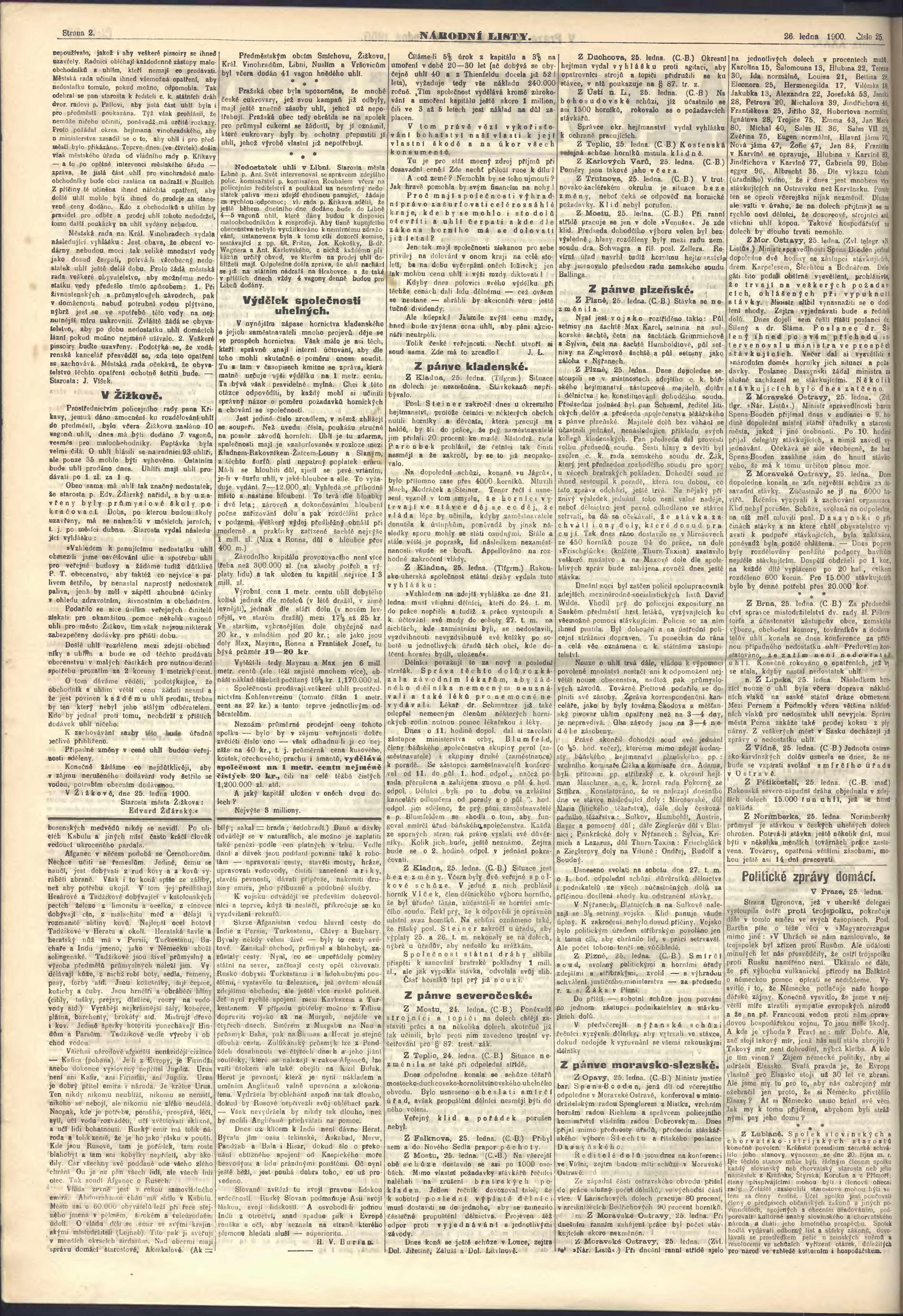 * Datum vydání výtisku: 26.1.1900 Číslo výtisku: 25 Poznámky k výtisku: ranní vydání;