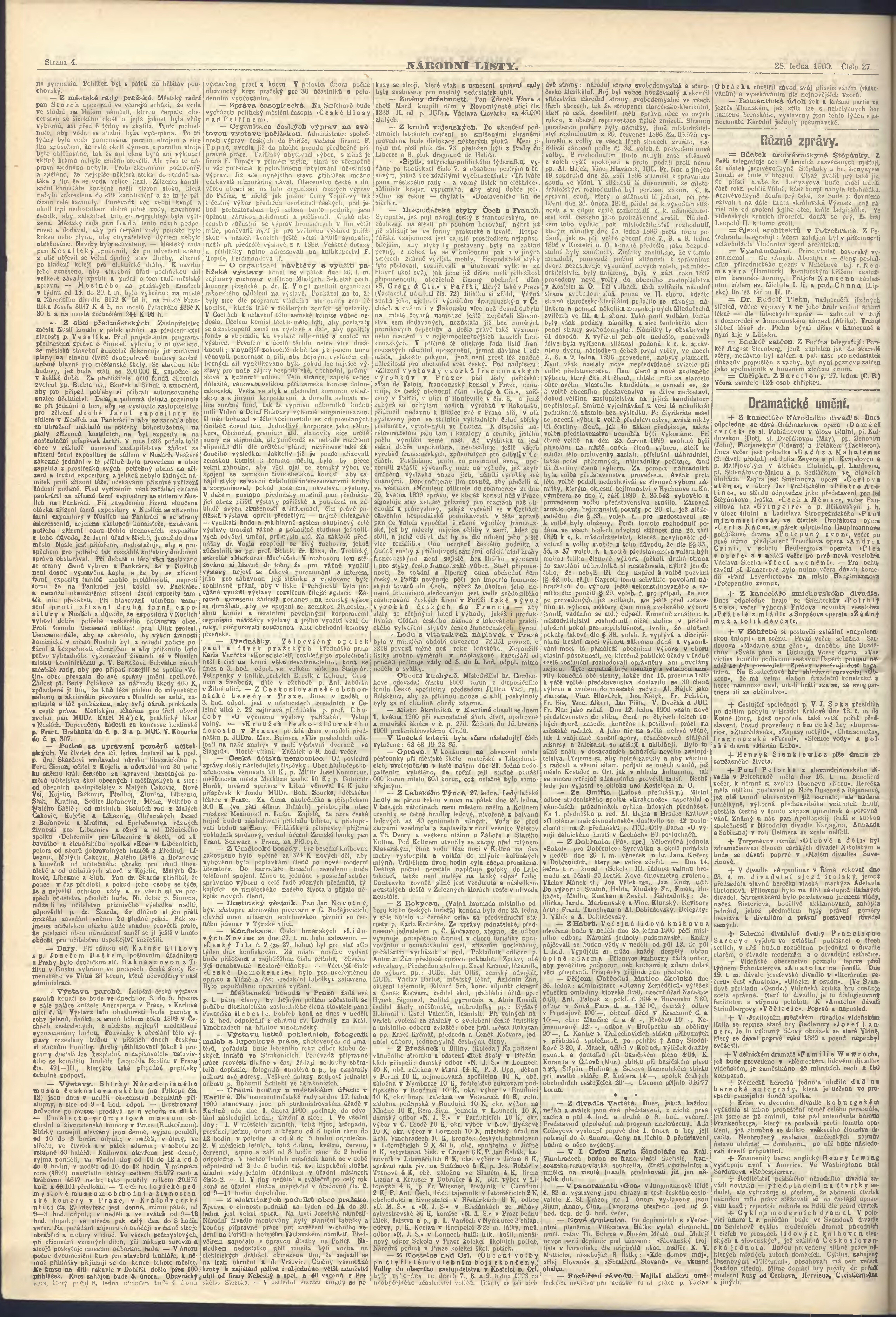 * Datum vydání výtisku: 28.1.1900 Číslo výtisku: 27 Poznámky k výtisku: ranní vydání;