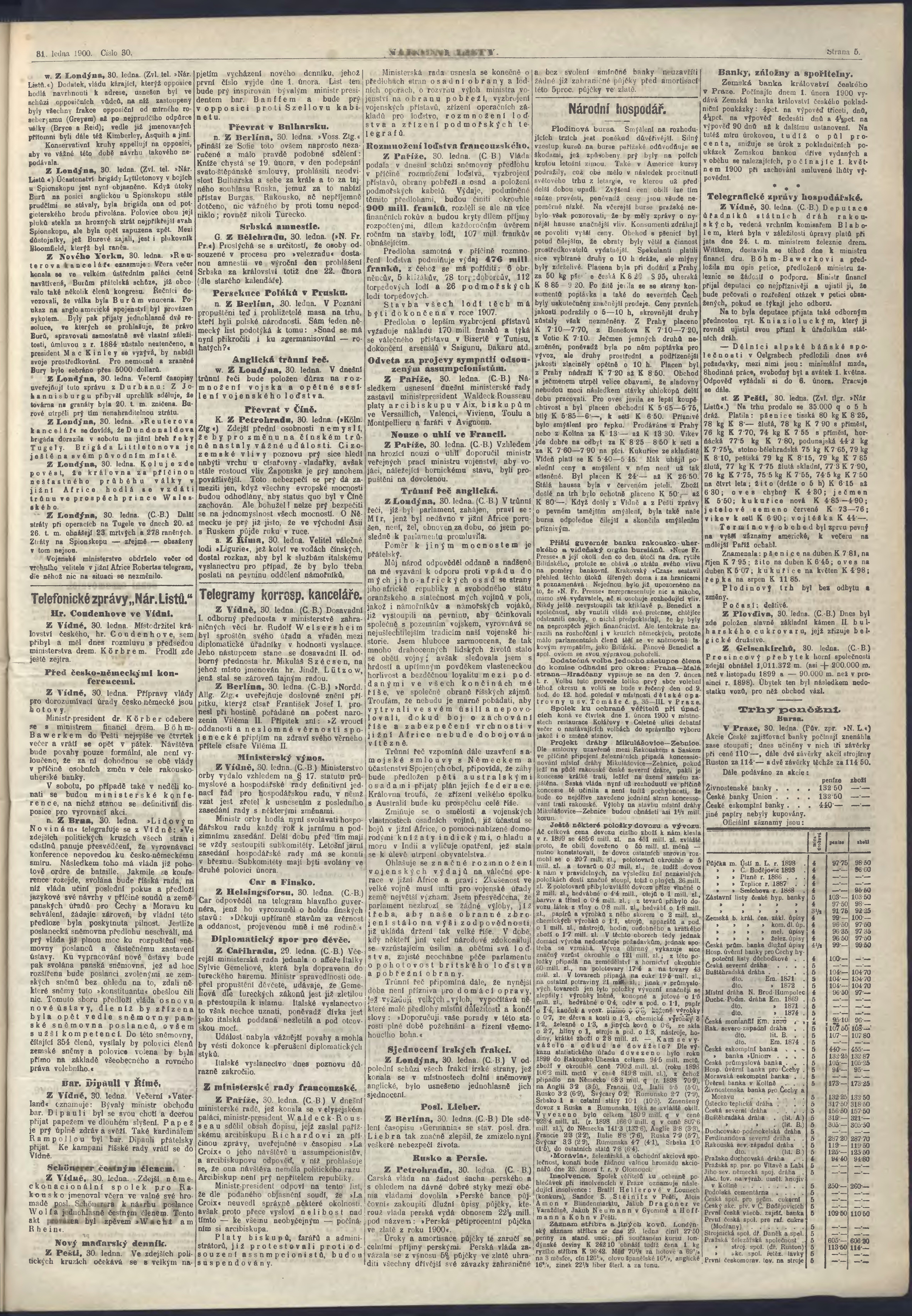 * Datum vydání výtisku: 31.1.1900 Číslo výtisku: 30 Poznámky k výtisku: ranní vydání;