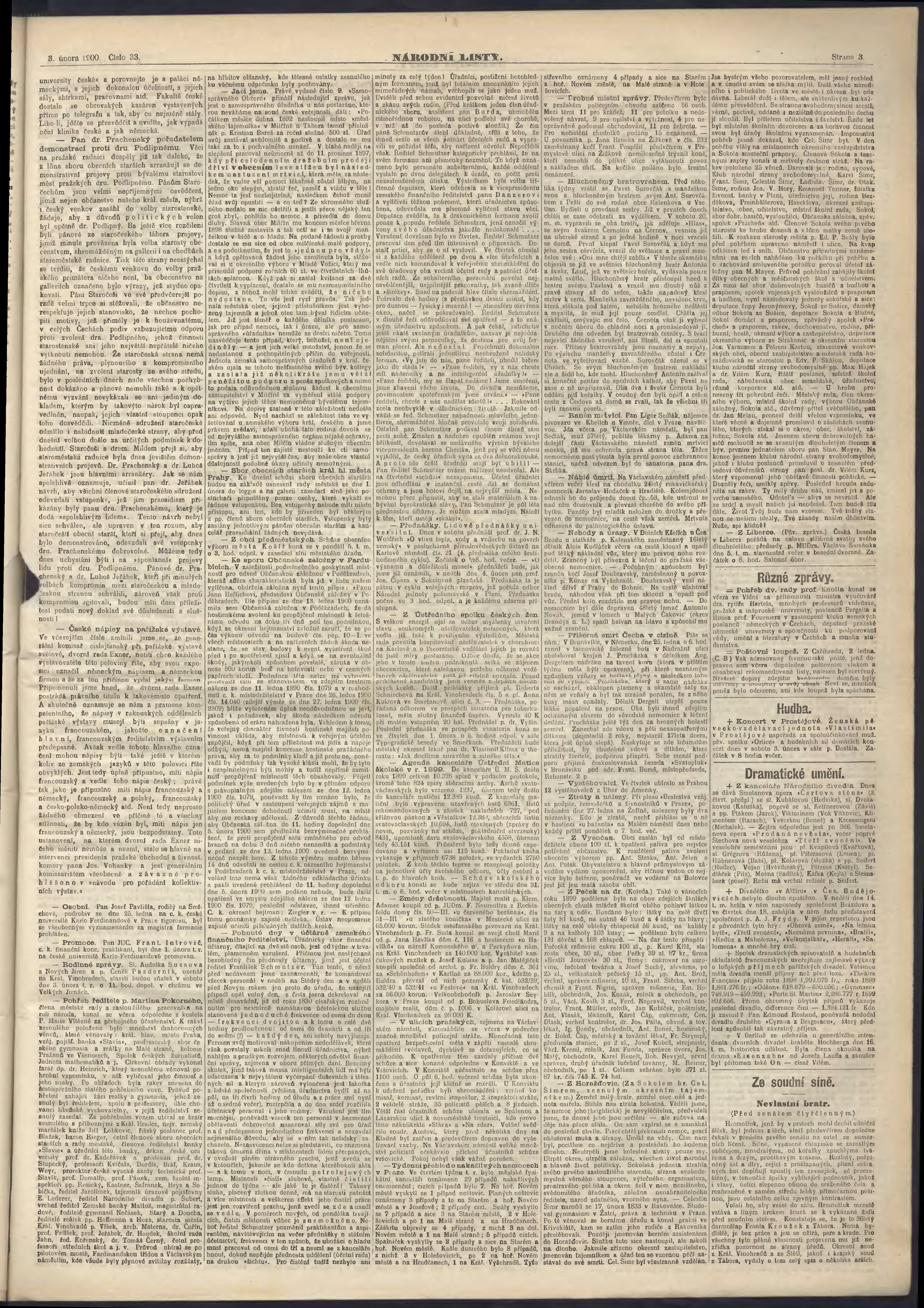 * Datum vydání výtisku: 3.2.1900 Číslo výtisku: 33 Poznámky k výtisku: ranní vydání;