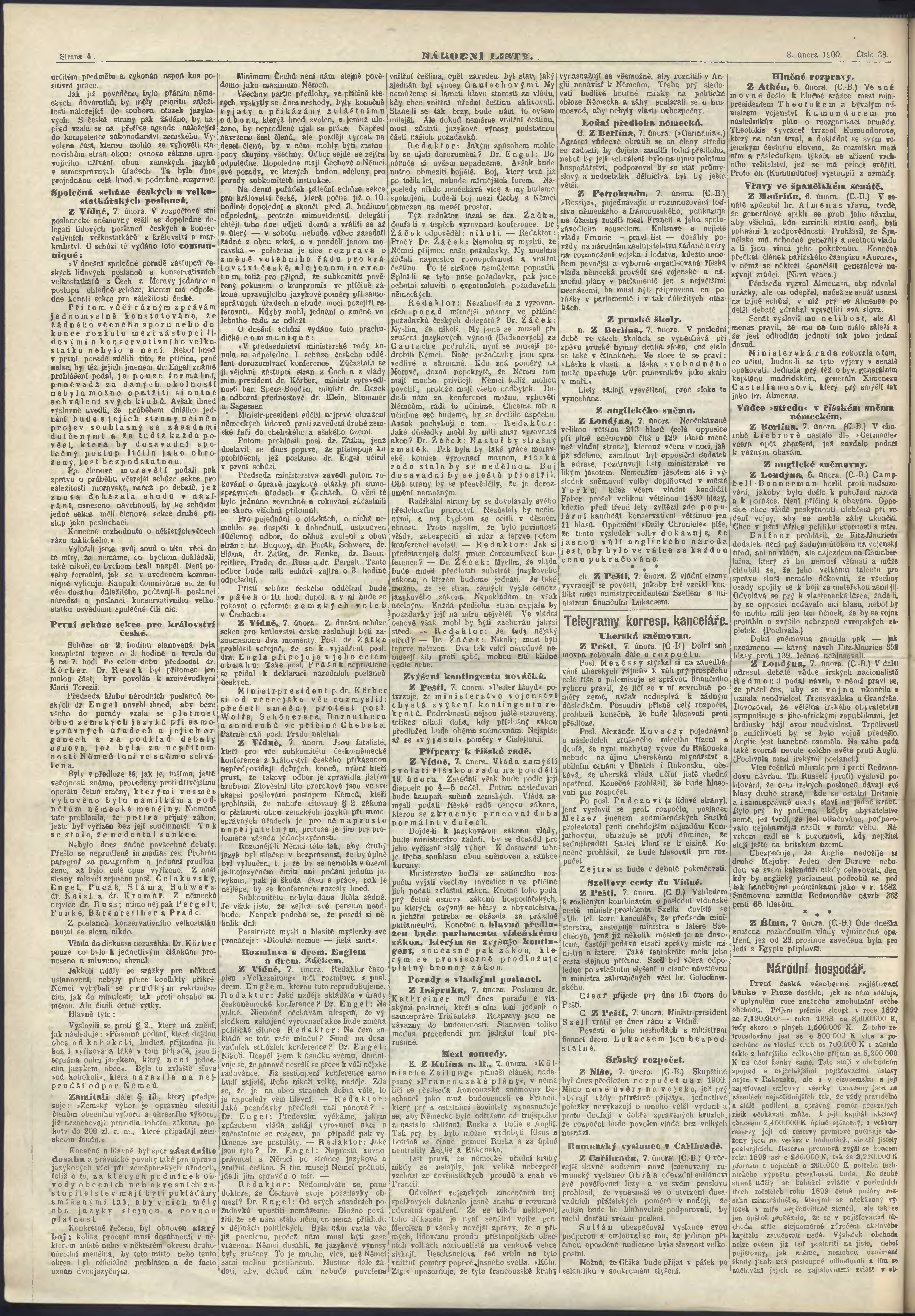 * Datum vydání výtisku: 8.2.1900 Číslo výtisku: 38 Poznámky k výtisku: ranní vydání;