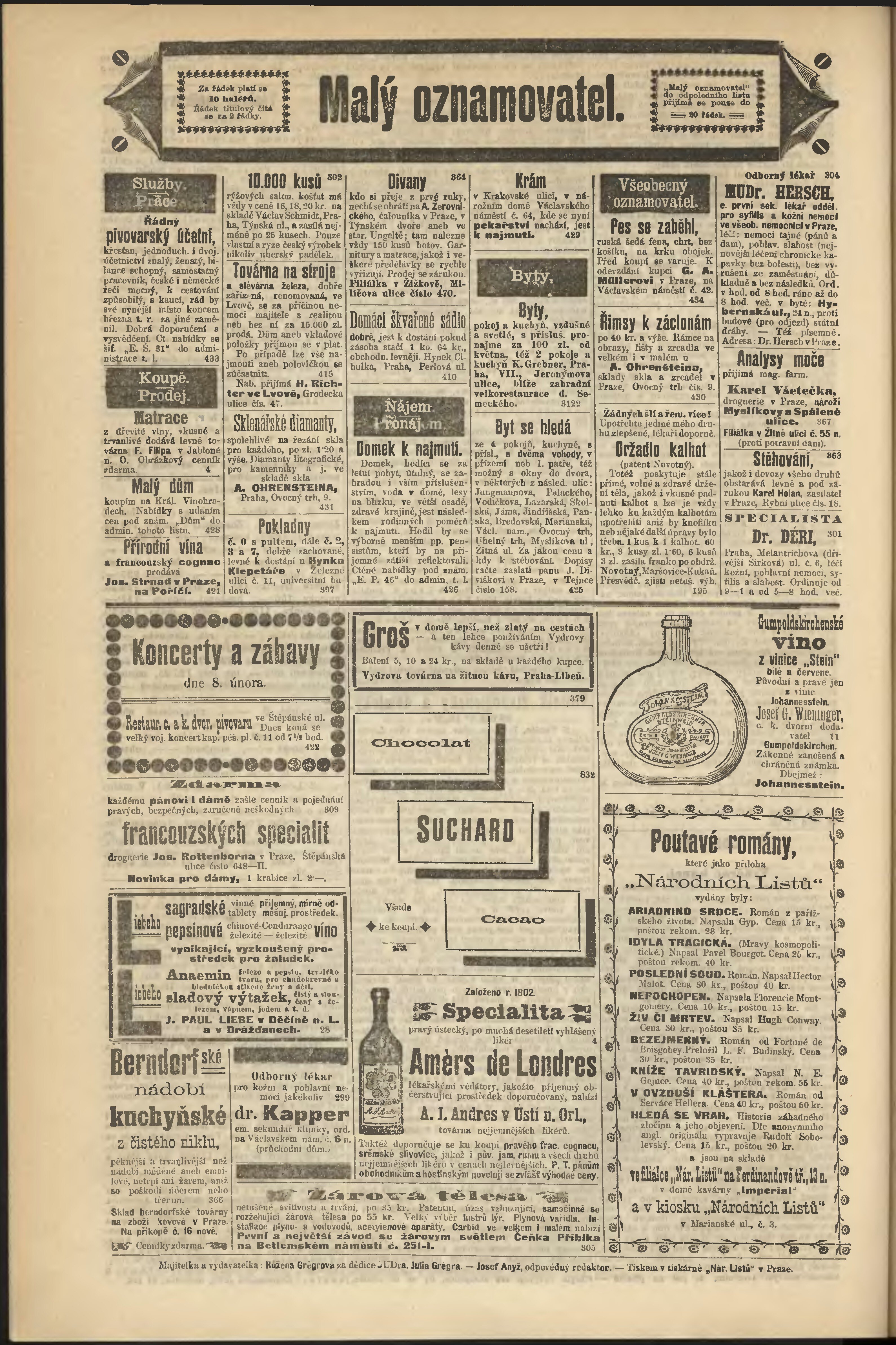 * Datum vydání výtisku: 8.2.1900 Číslo výtisku: 38 Poznámky k výtisku: odpolední vydání;