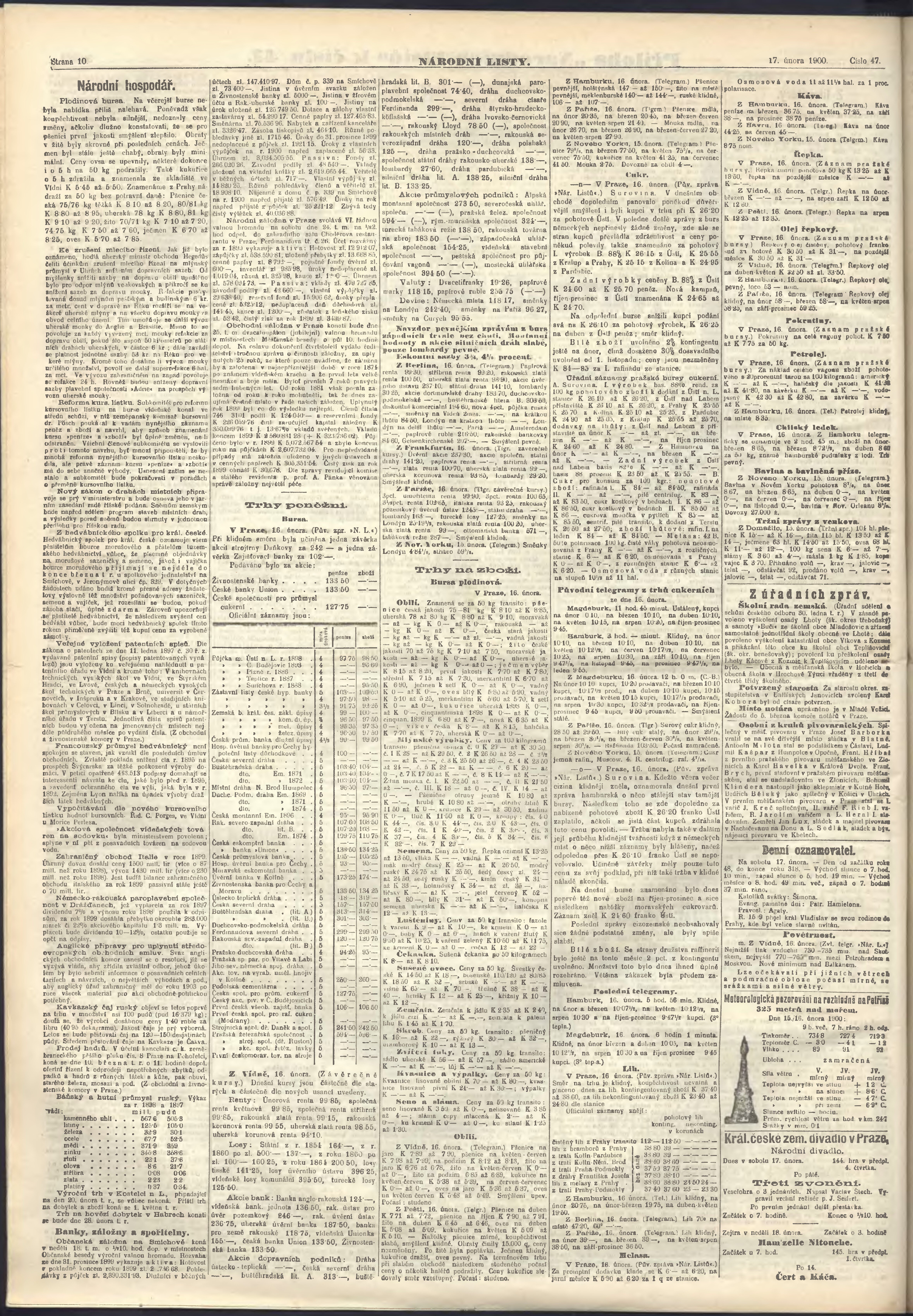 * Datum vydání výtisku: 17.2.1900 Číslo výtisku: 47 Poznámky k výtisku: ranní vydání;