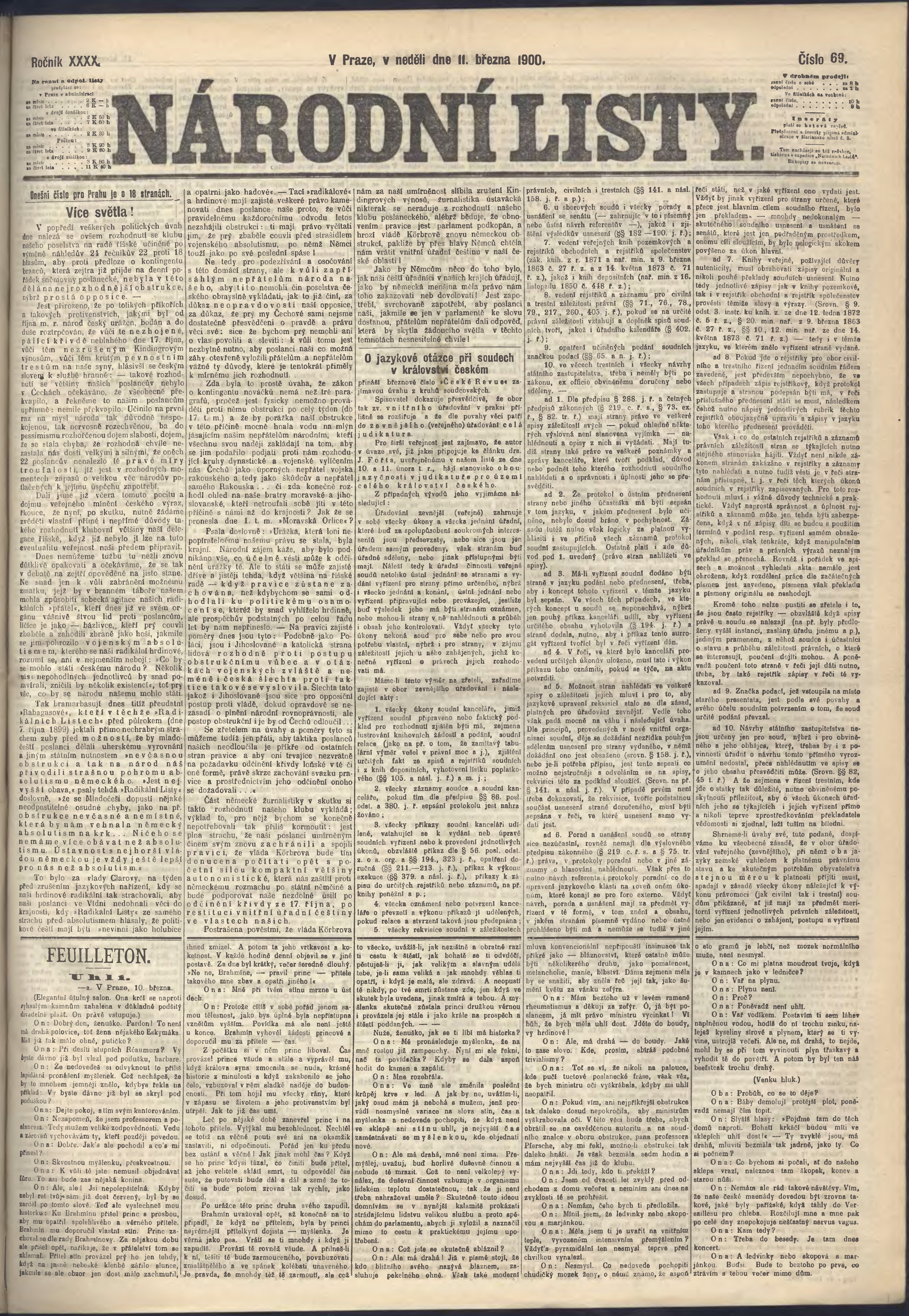 * Datum vydání výtisku: 11.3.1900 Číslo výtisku: 69 Poznámky k výtisku: ranní vydání;