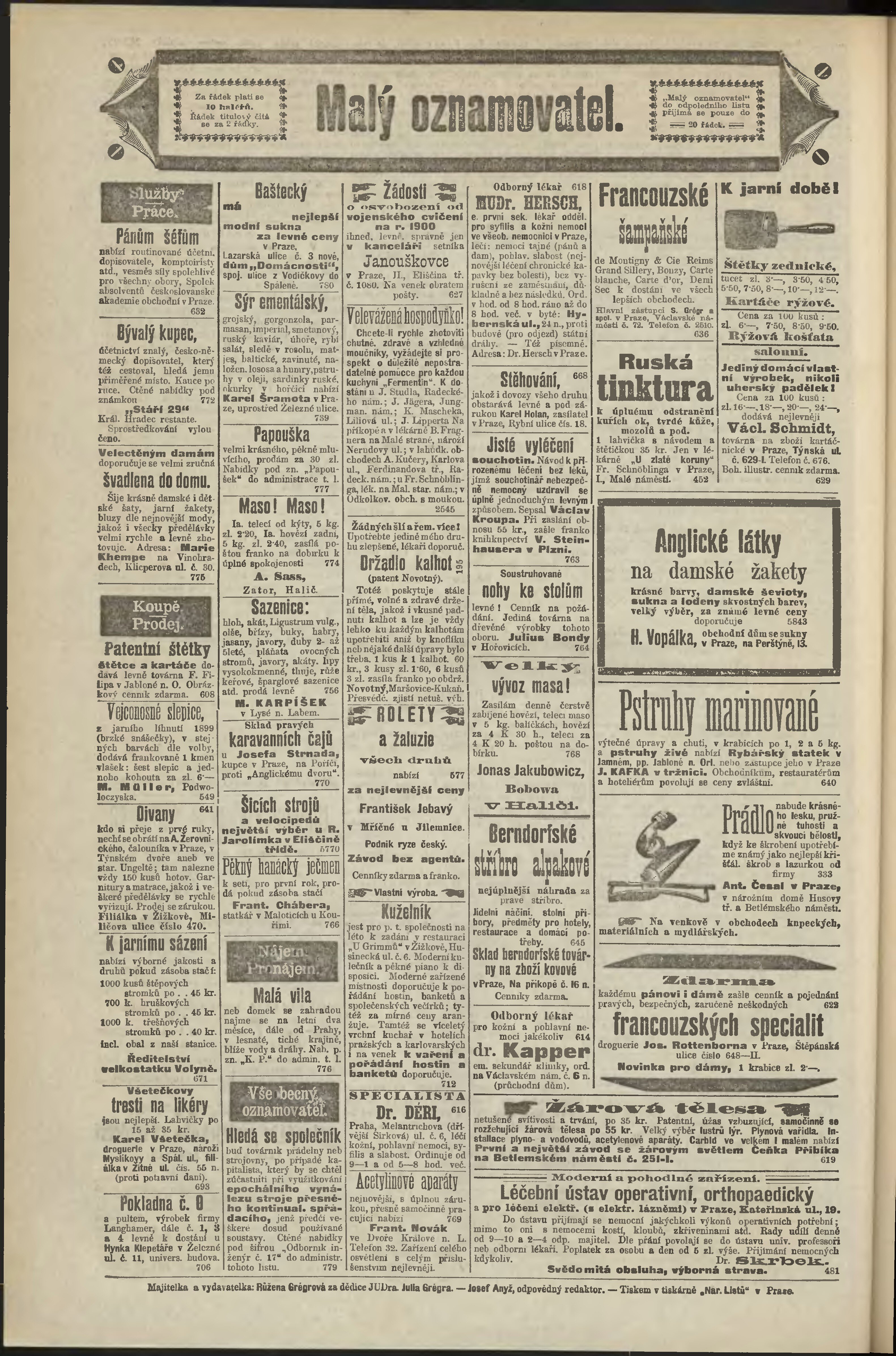 * Datum vydání výtisku: 13.3.1900 Číslo výtisku: 71 Poznámky k výtisku: odpolední vydání;