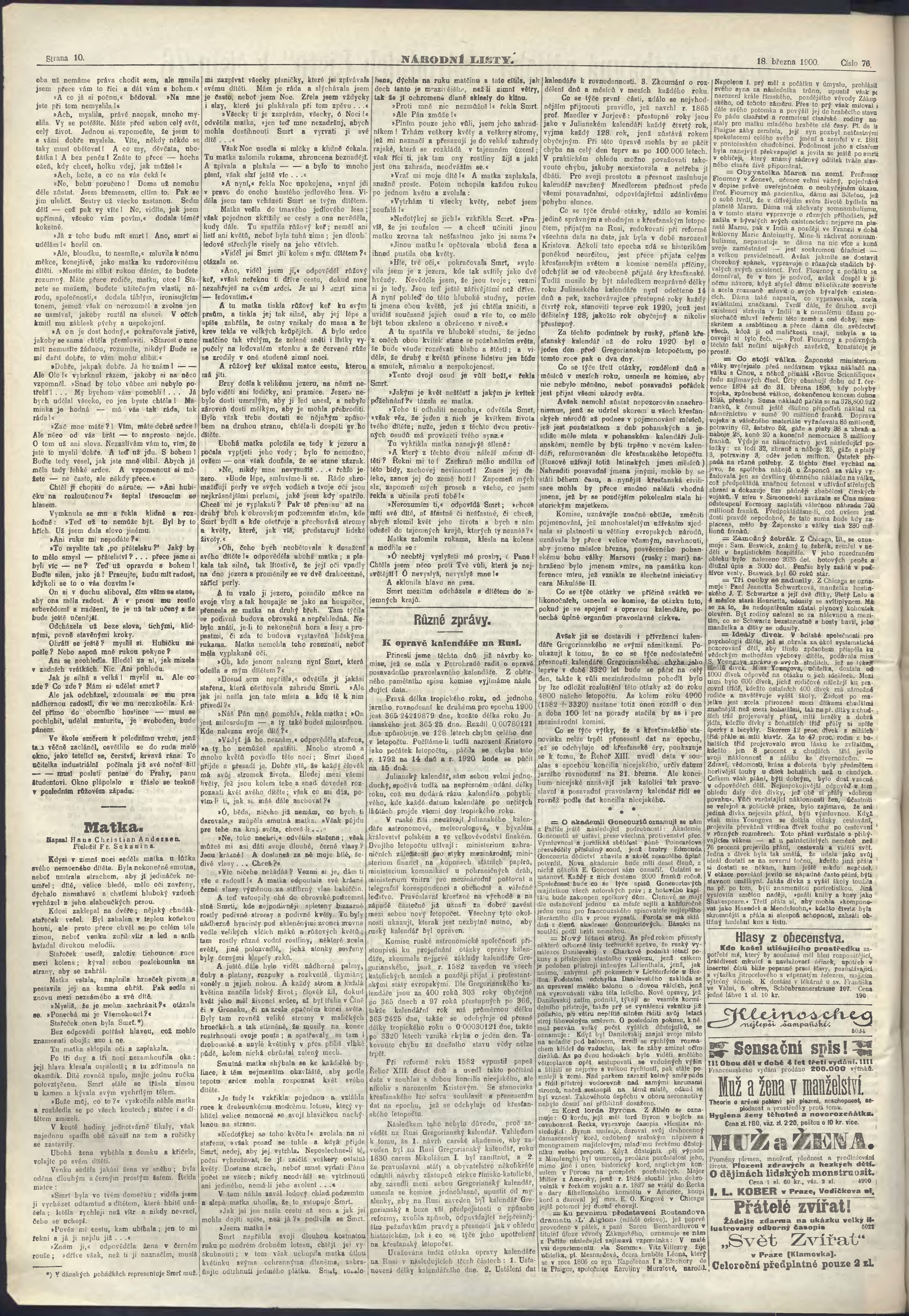 * Datum vydání výtisku: 18.3.1900 Číslo výtisku: 76 Poznámky k výtisku: ranní vydání;