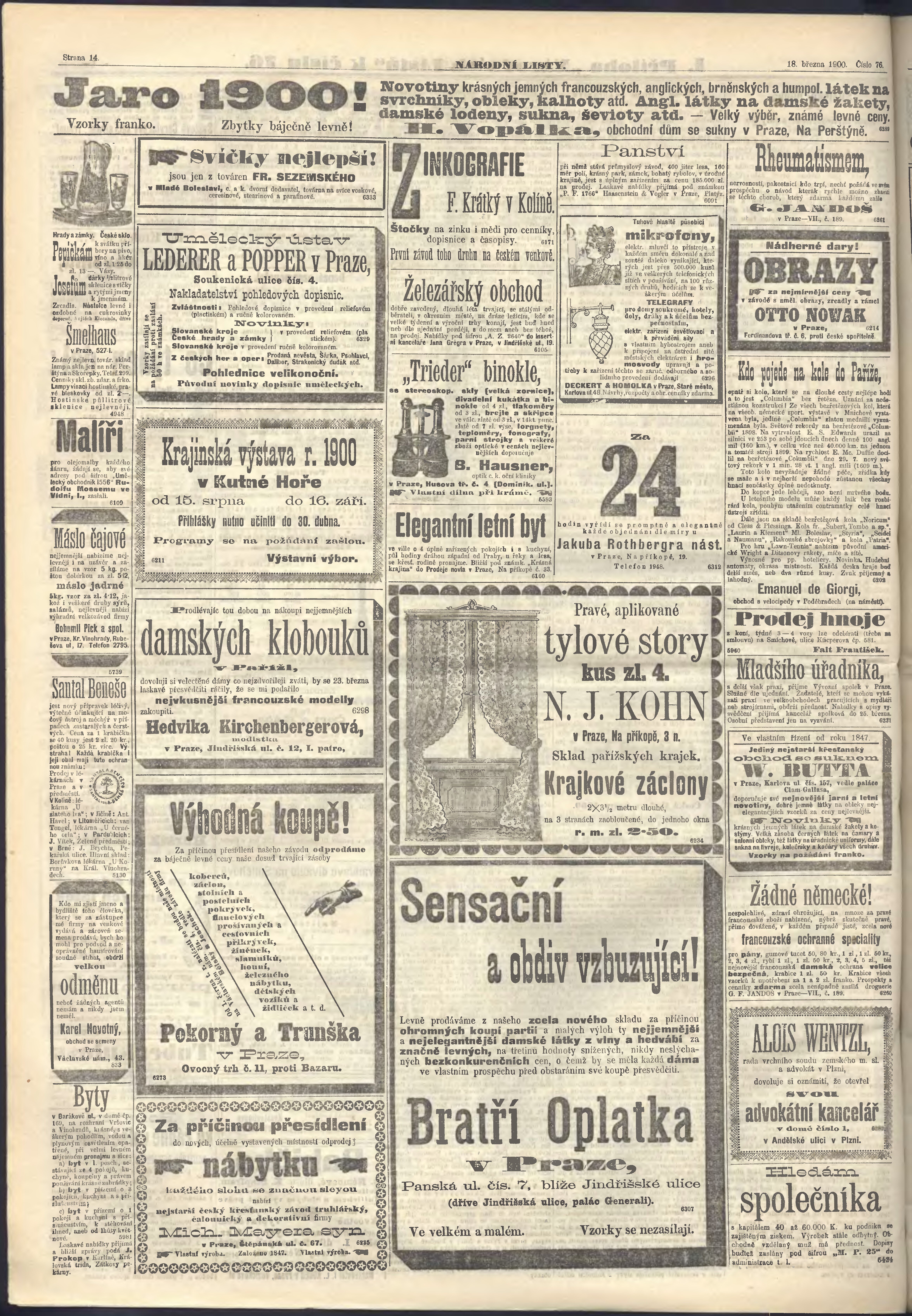 * Datum vydání výtisku: 18.3.1900 Číslo výtisku: 76 Poznámky k výtisku: ranní vydání;