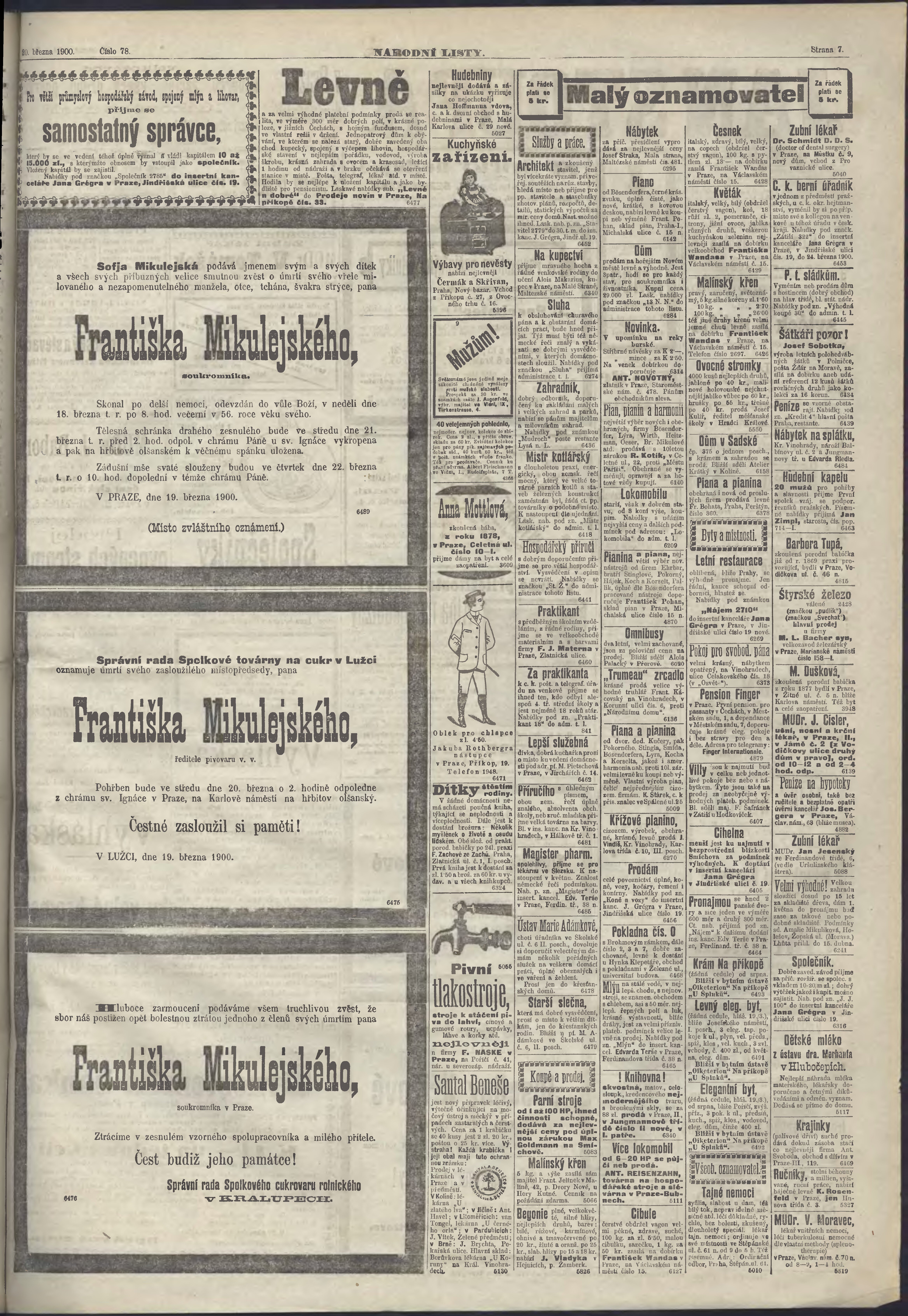 * Datum vydání výtisku: 20.3.1900 Číslo výtisku: 78 Poznámky k výtisku: ranní vydání;