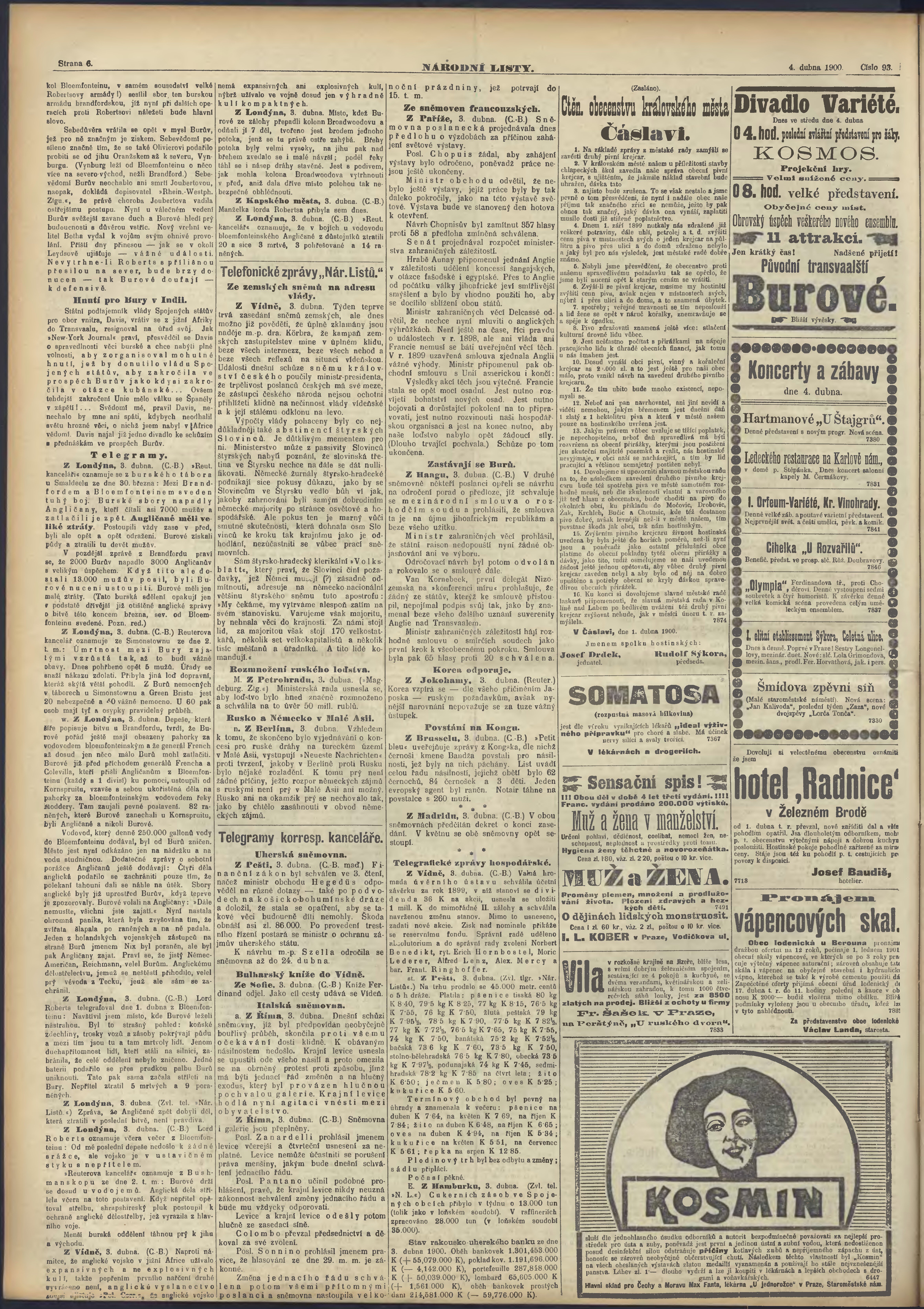 * Datum vydání výtisku: 4.4.1900 Číslo výtisku: 93 Poznámky k výtisku: ranní vydání;