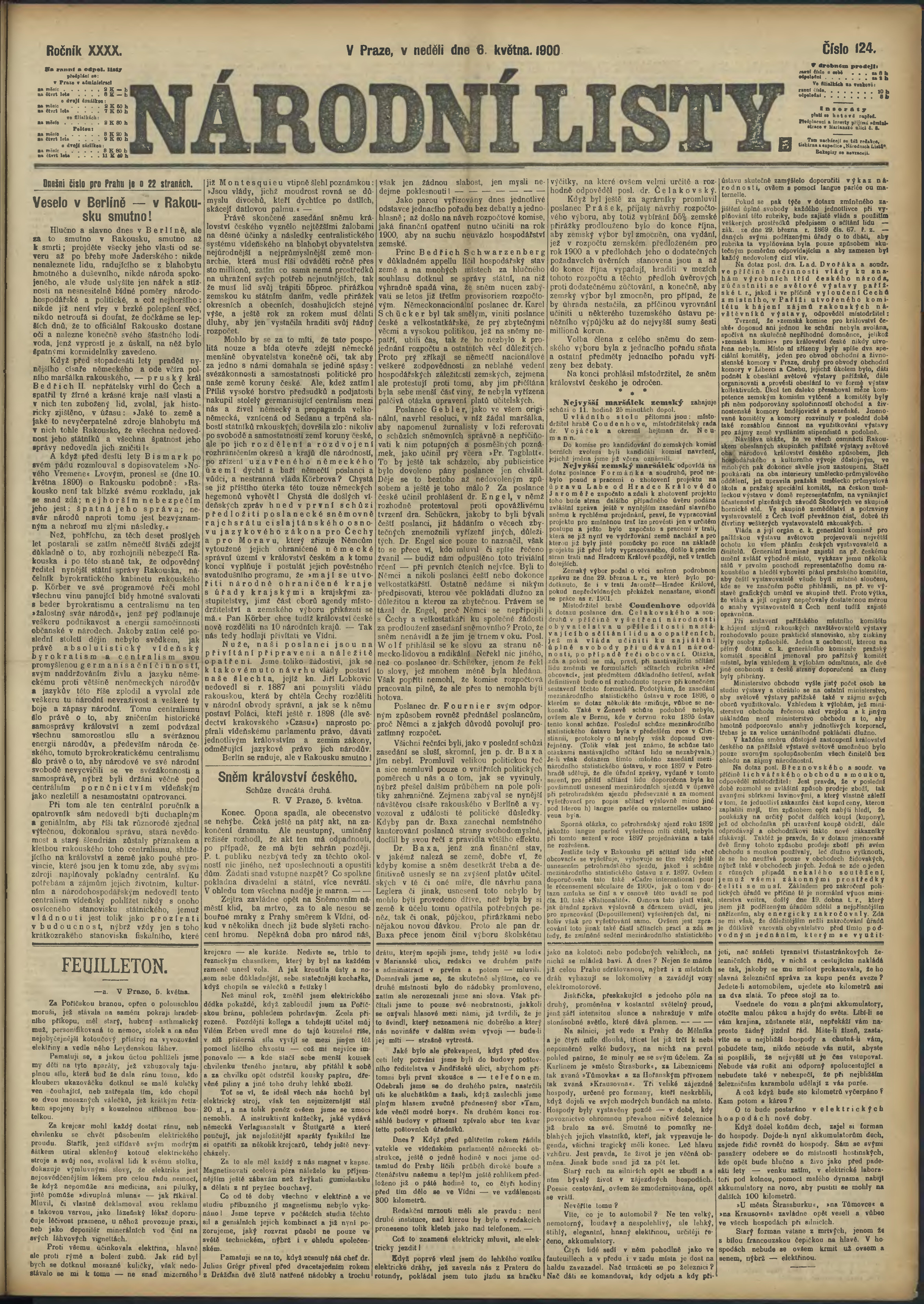 * Datum vydání výtisku: 6.5.1900 Číslo výtisku: 124 Poznámky k výtisku: ranní vydání;