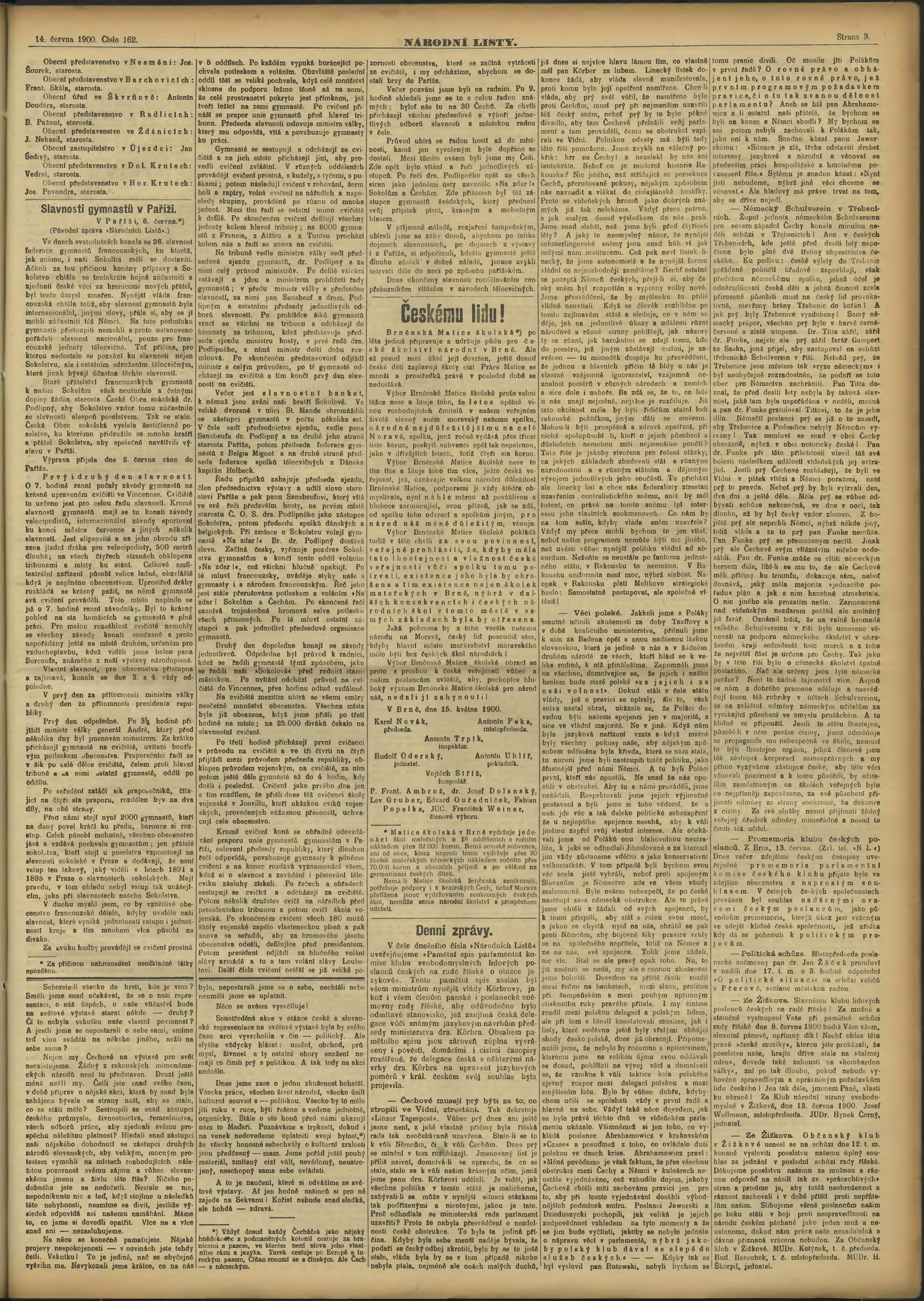* Datum vydání výtisku: 14.6.1900 Číslo výtisku: 162 Poznámky k výtisku: ranní vydání;
