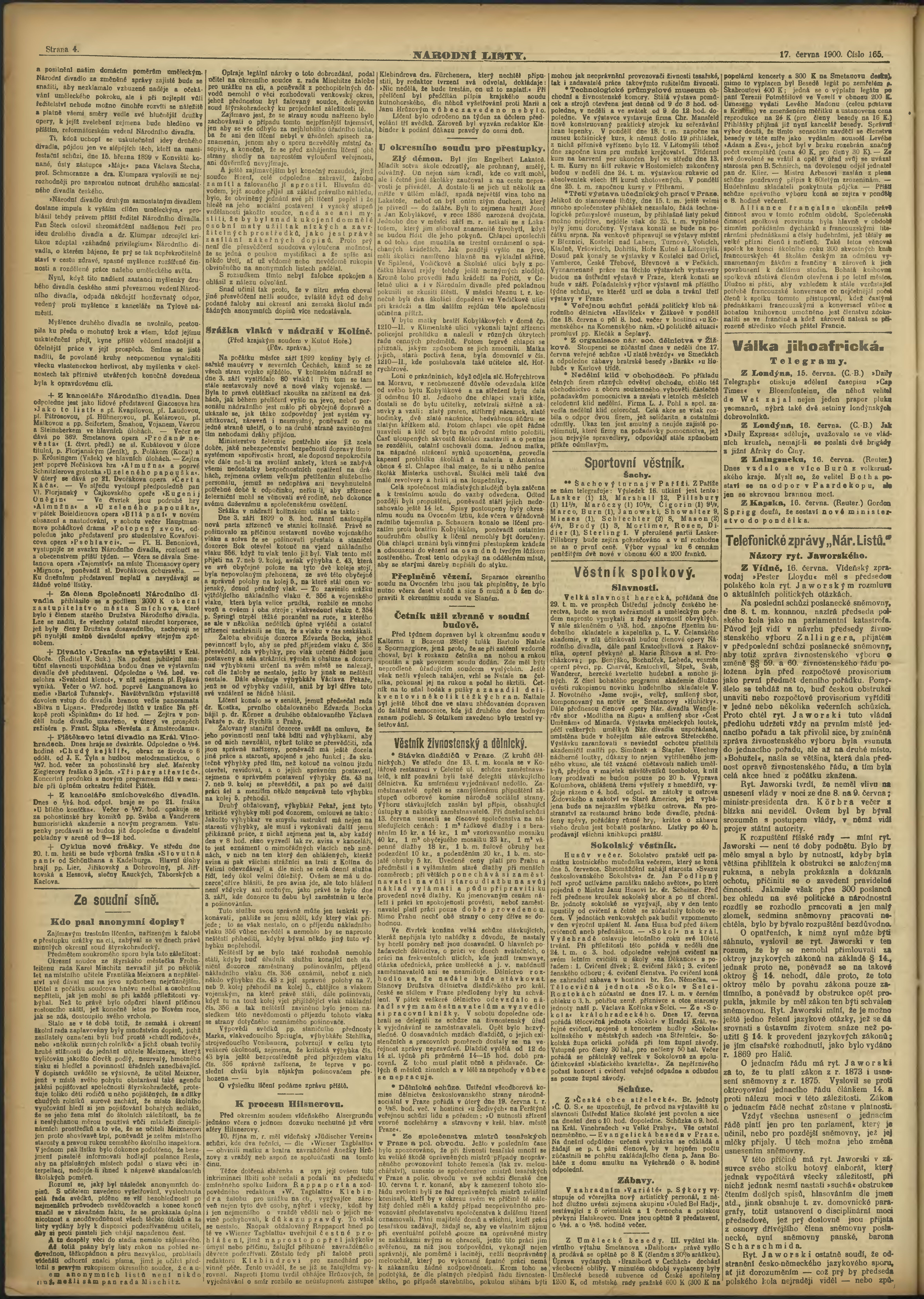 * Datum vydání výtisku: 17.6.1900 Číslo výtisku: 165 Poznámky k výtisku: ranní vydání;