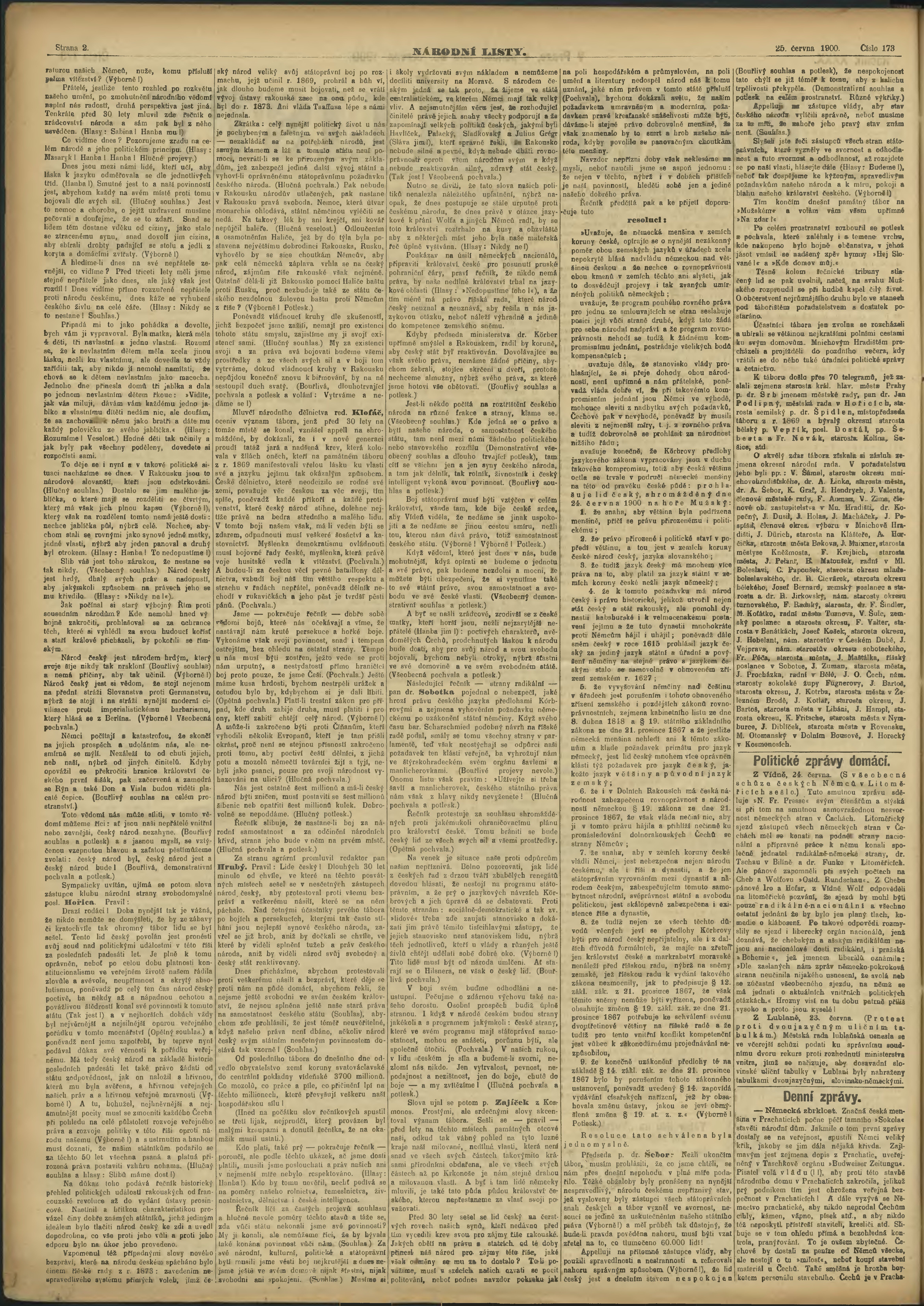 * Datum vydání výtisku: 25.6.1900 Číslo výtisku: 173 Poznámky k výtisku: ranní vydání;