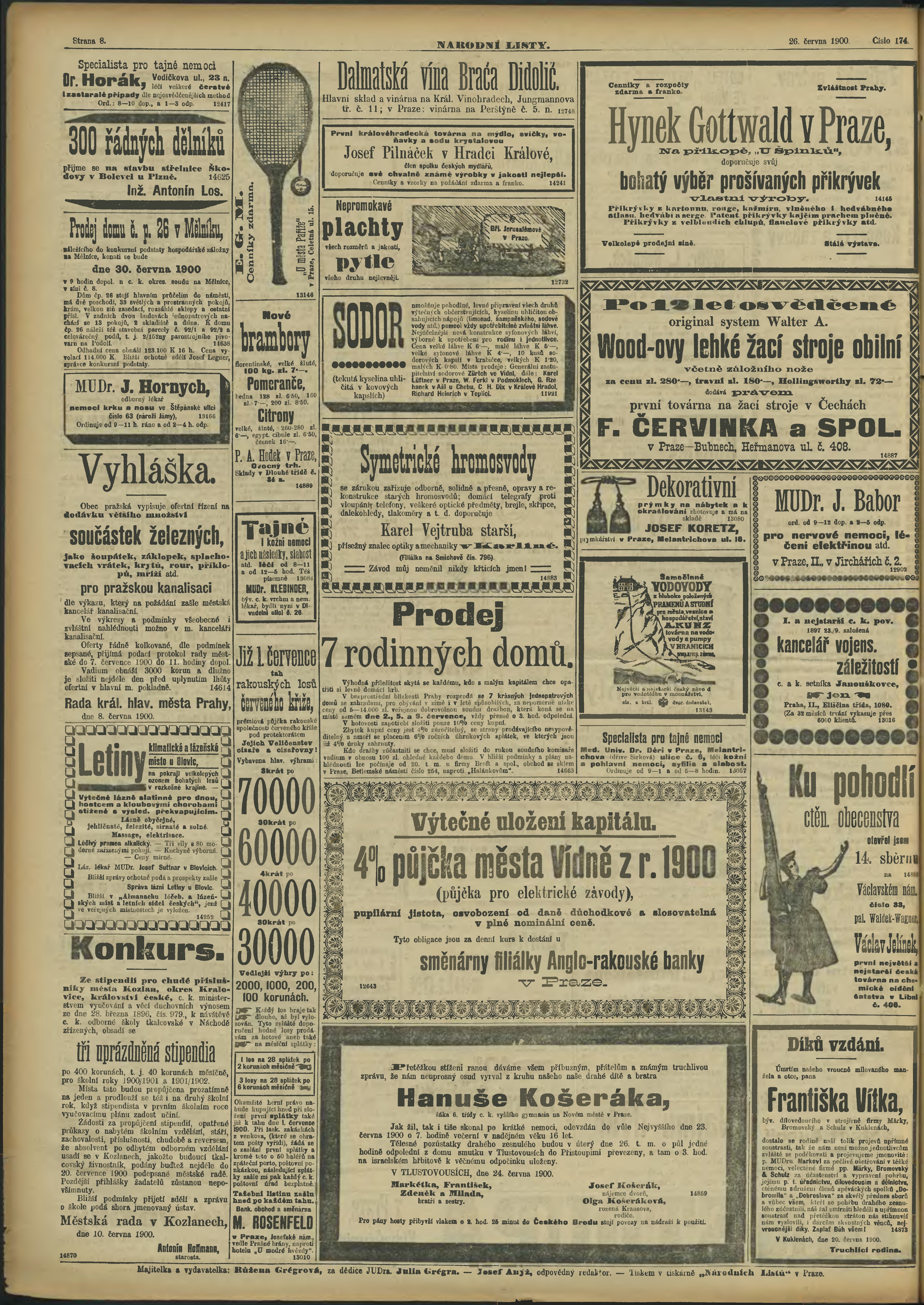 * Datum vydání výtisku: 26.6.1900 Číslo výtisku: 174 Poznámky k výtisku: ranní vydání;