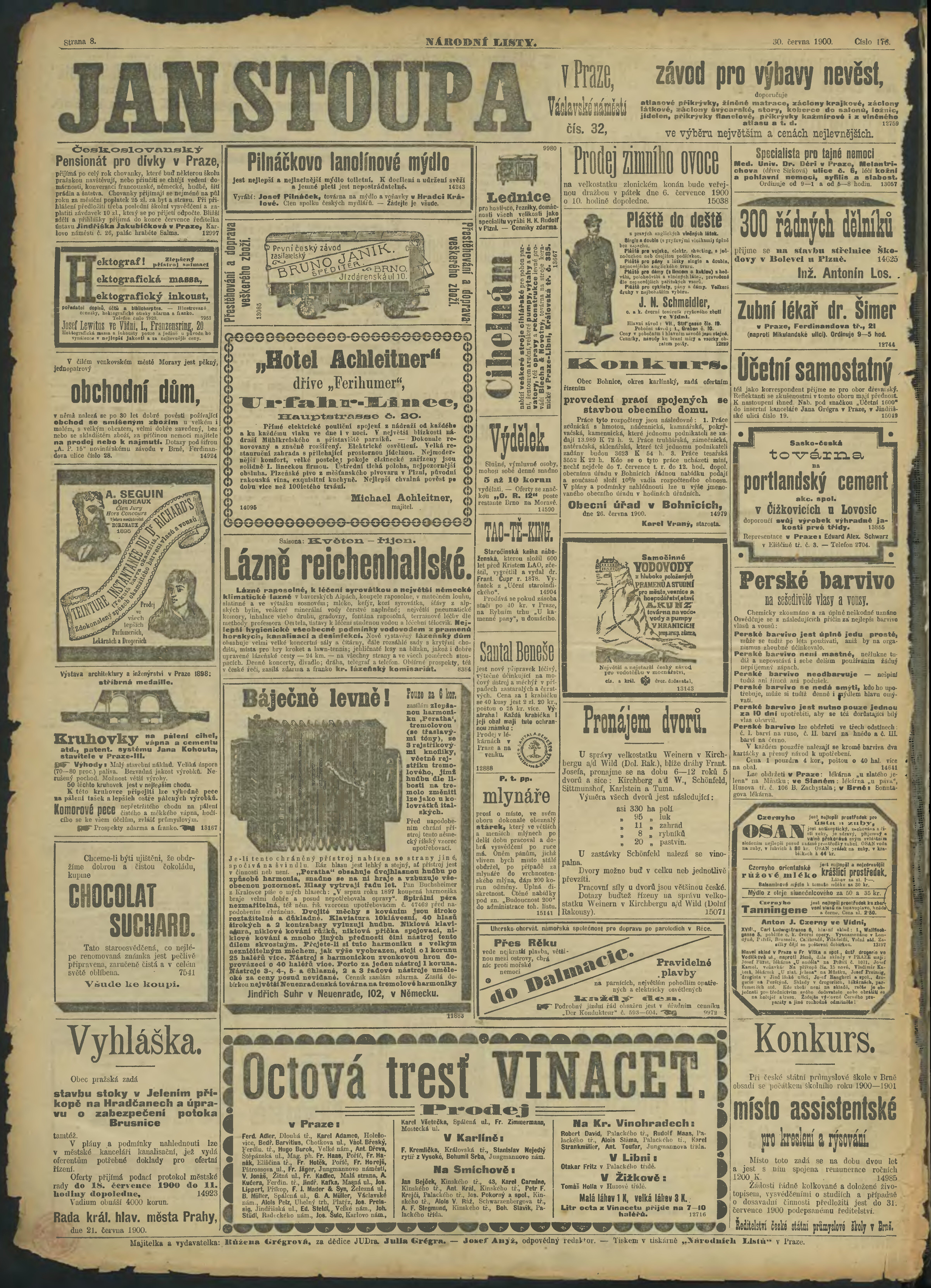 * Datum vydání výtisku: 30.6.1900 Číslo výtisku: 178 Poznámky k výtisku: ranní vydání;