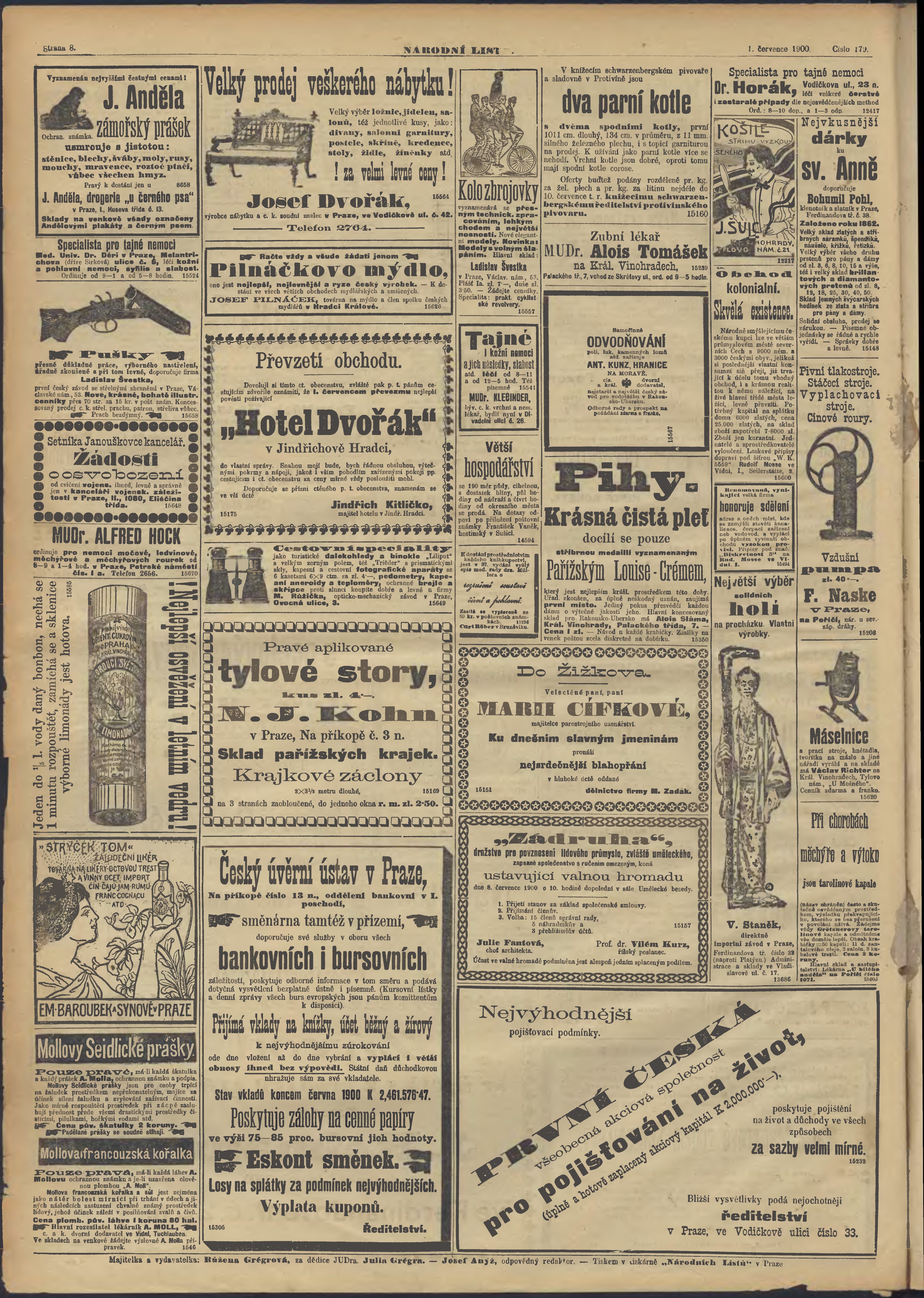 * Datum vydání výtisku: 1.7.1900 Číslo výtisku: 179 Poznámky k výtisku: ranní vydání;