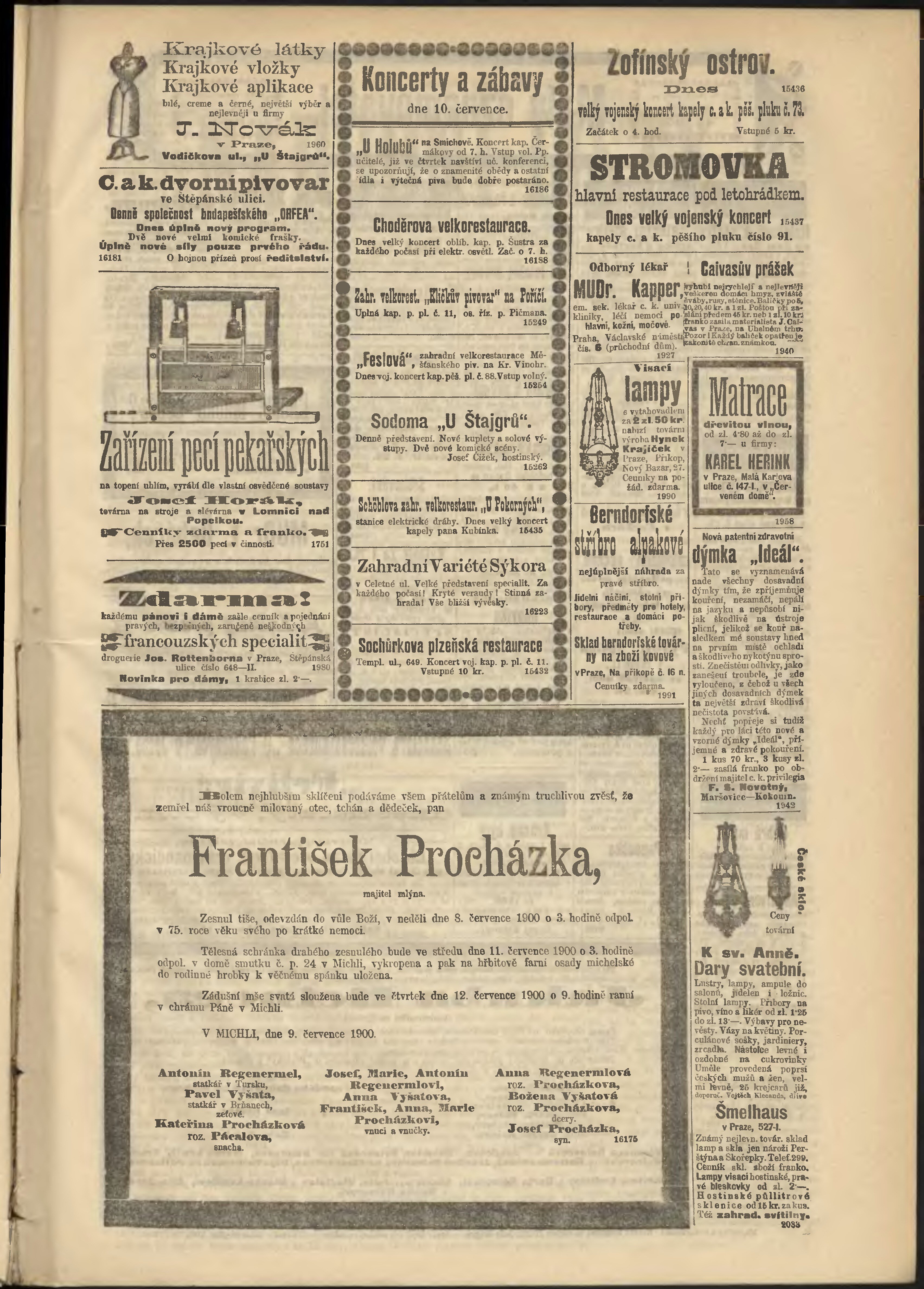 * Datum vydání výtisku: 10.7.1900 Číslo výtisku: 188 Poznámky k výtisku: odpolední vydání;
